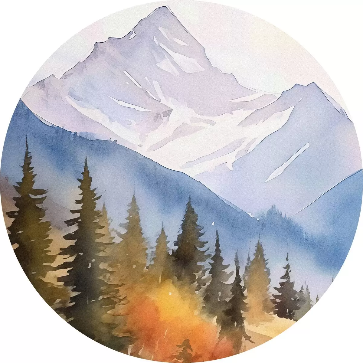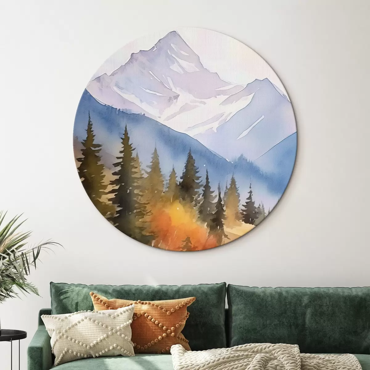 Okrągły obraz Jesienna górska sceneria z rzeką i bujnym lasem Nr r46187