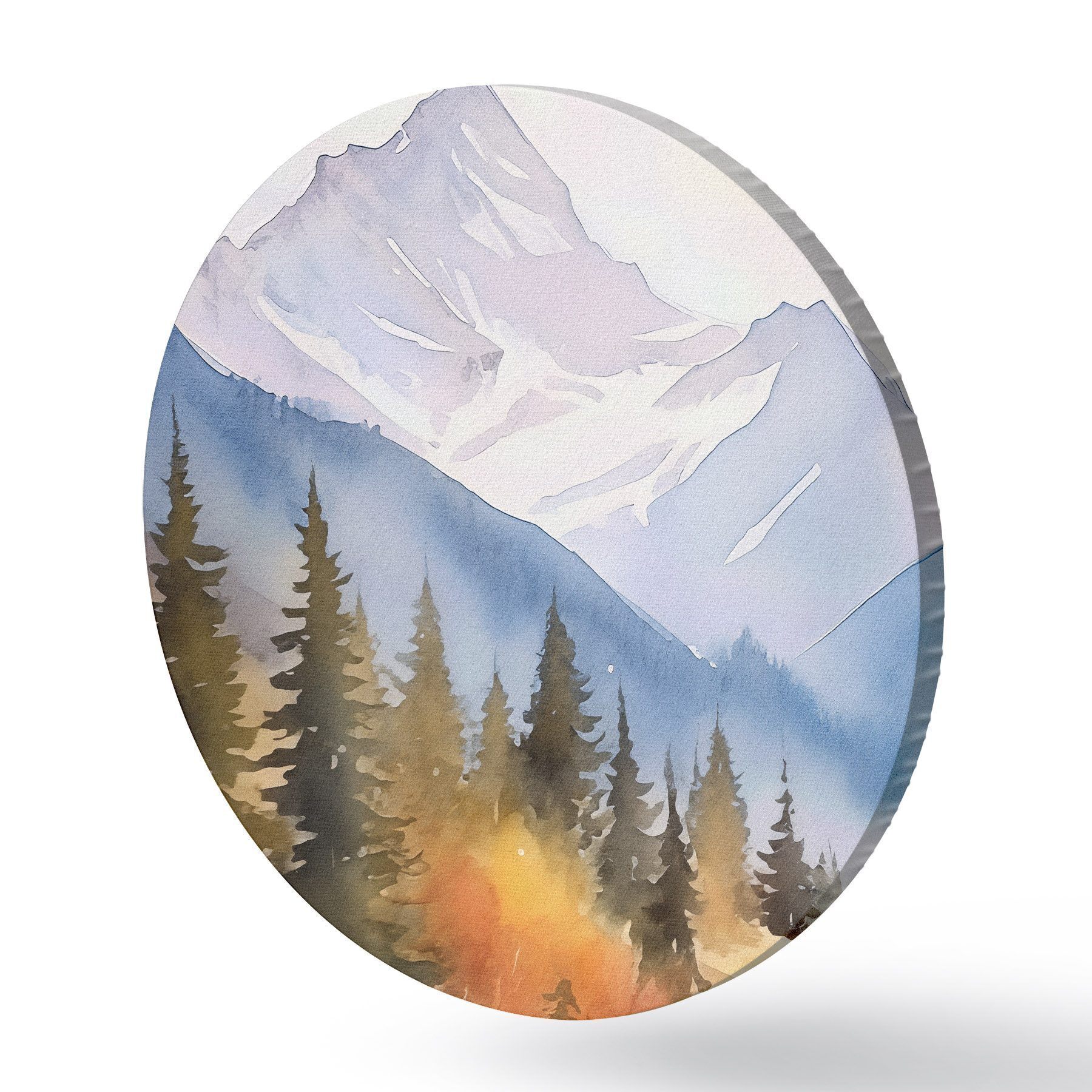 Okrągłe obrazy Jesienna górska sceneria z rzeką i bujnym lasem r46187