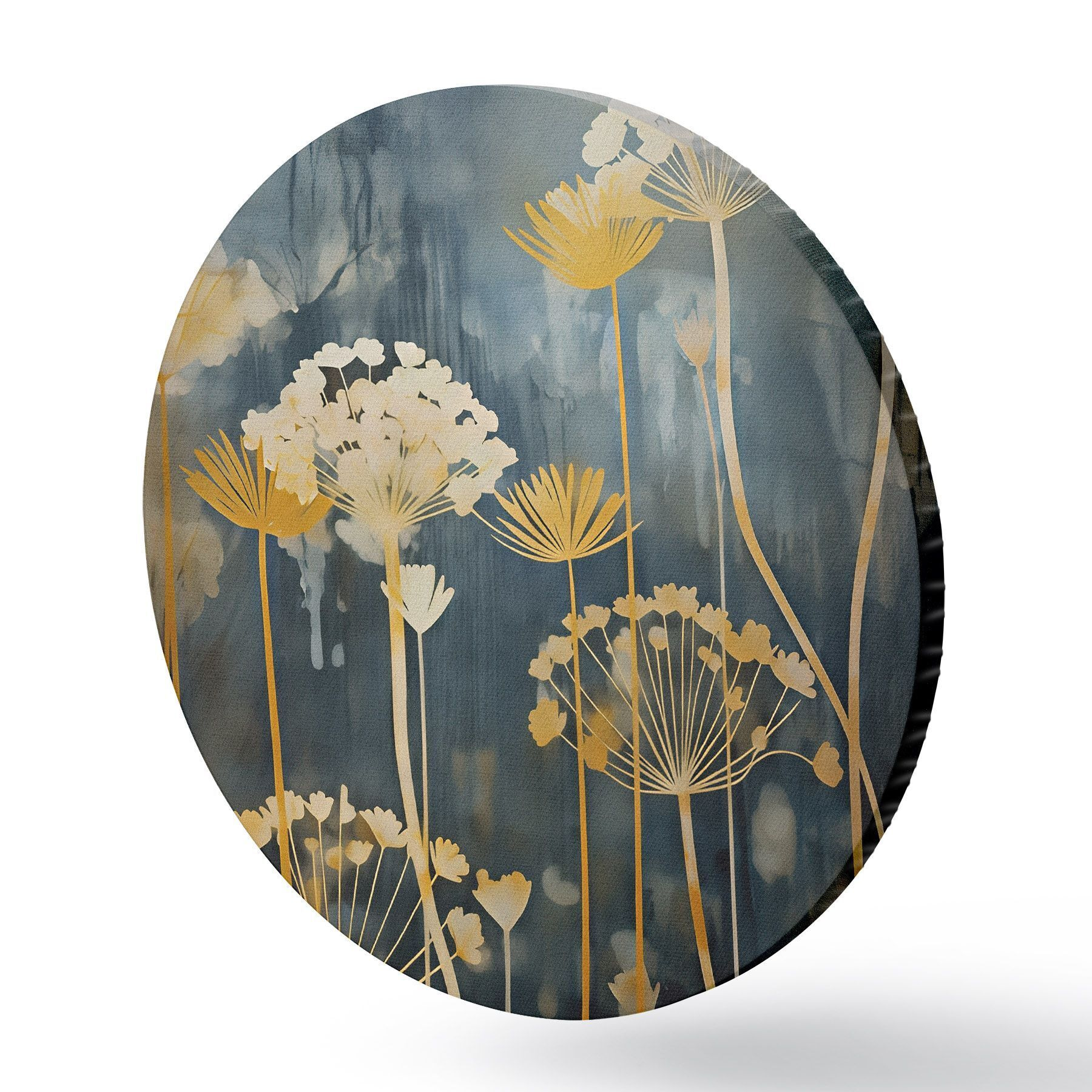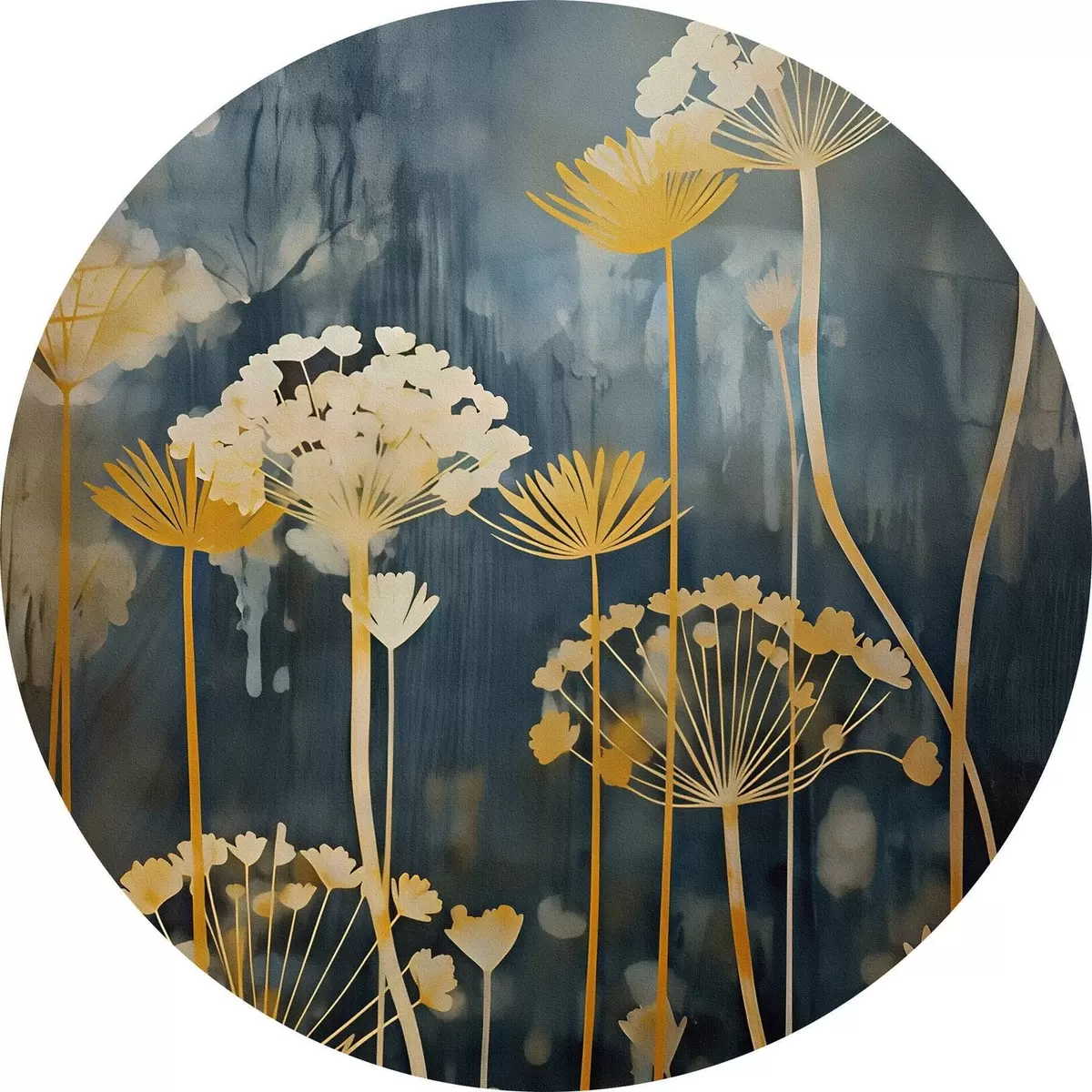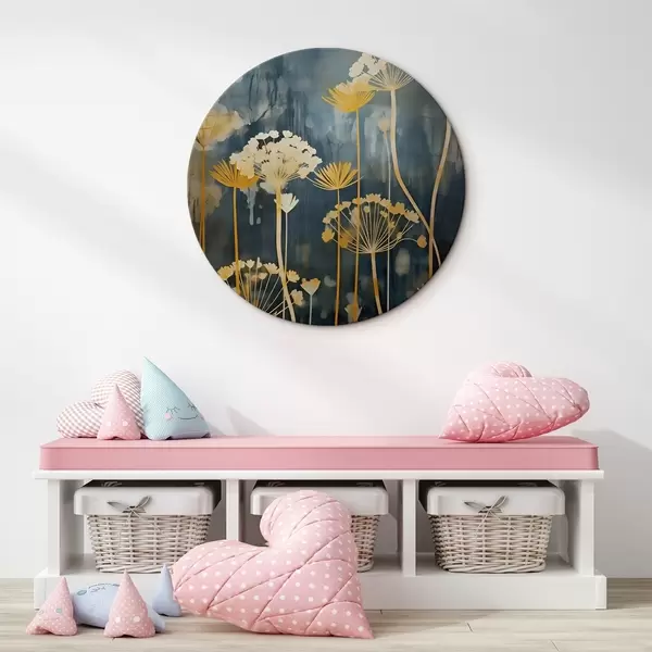 Okrągły obraz Stylizowane kwiaty o cienkich łodygach na ciemnym tle Nr r46188
