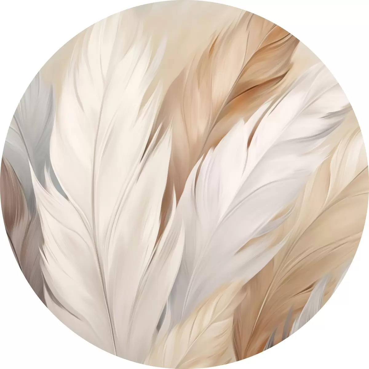 Okrągły obraz Miękkie pióra w odcieniach beżu i szarości Nr r46190