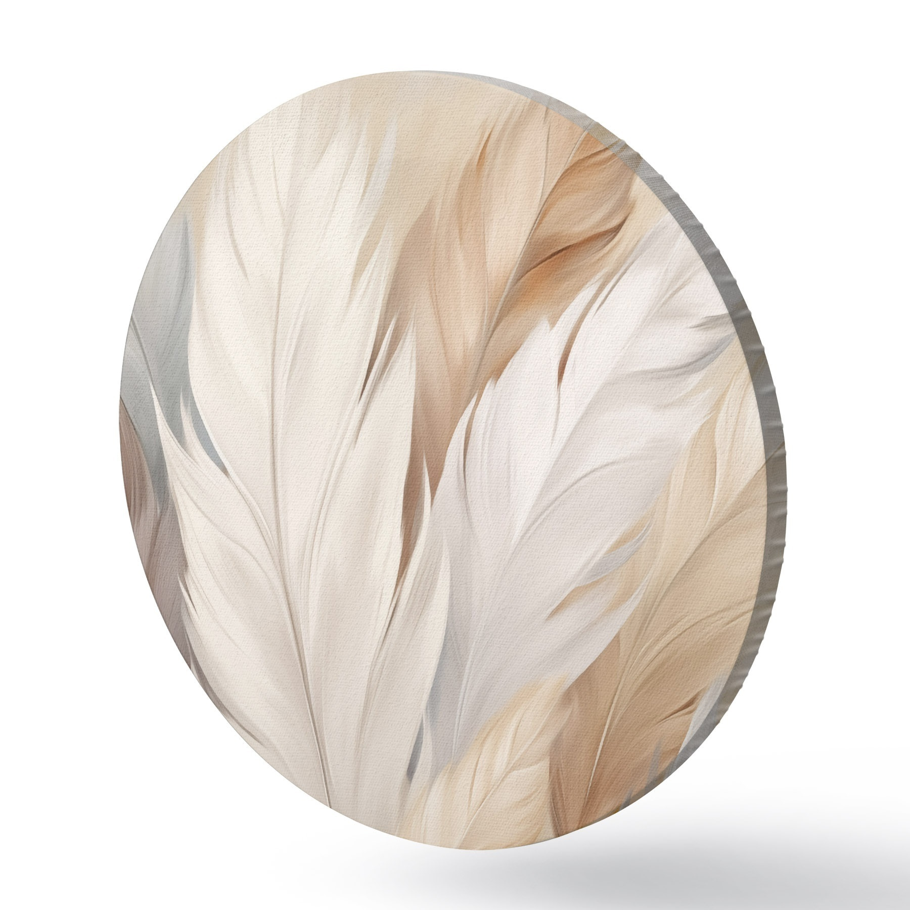 Okrągłe obrazy Miękkie pióra w odcieniach beżu i szarości r46190
