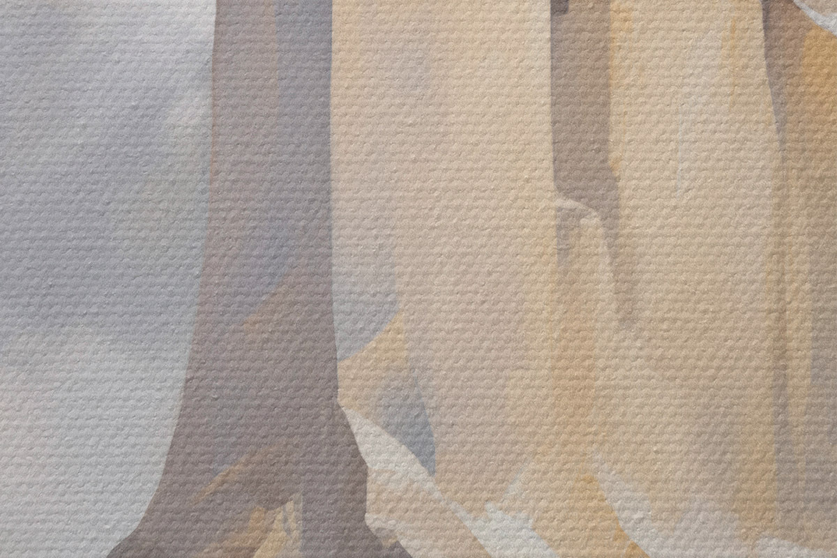 Drobny splot nici na tym płótnie przypomina powierzchnię profesjonalnych płócien artystycznych.