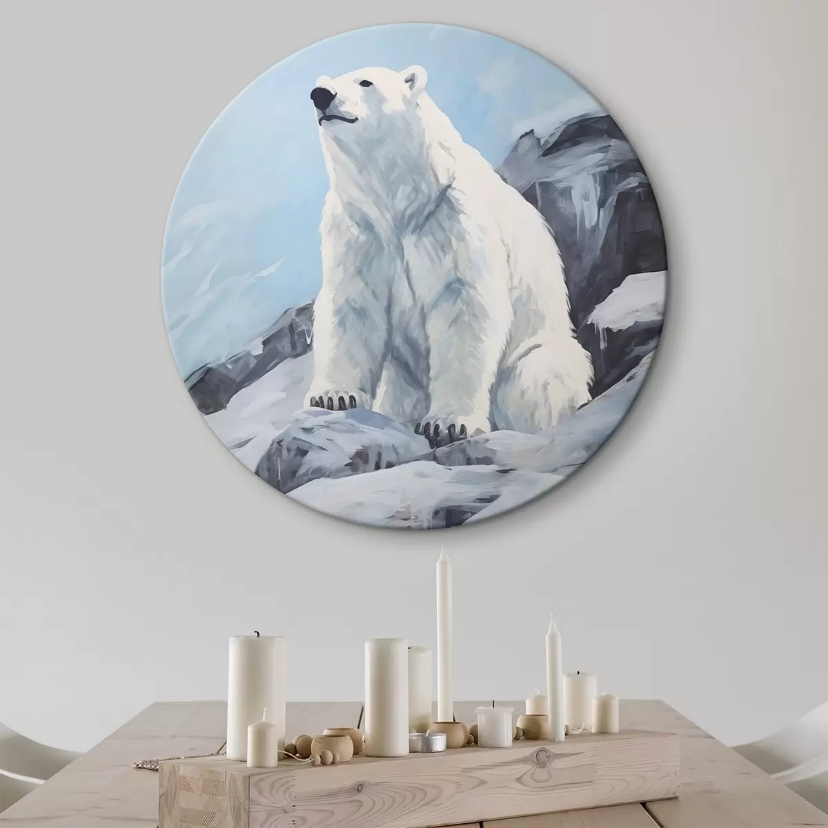 Okrągły obraz Niedźwiedź siedzi na kry lodowej Nr r46199