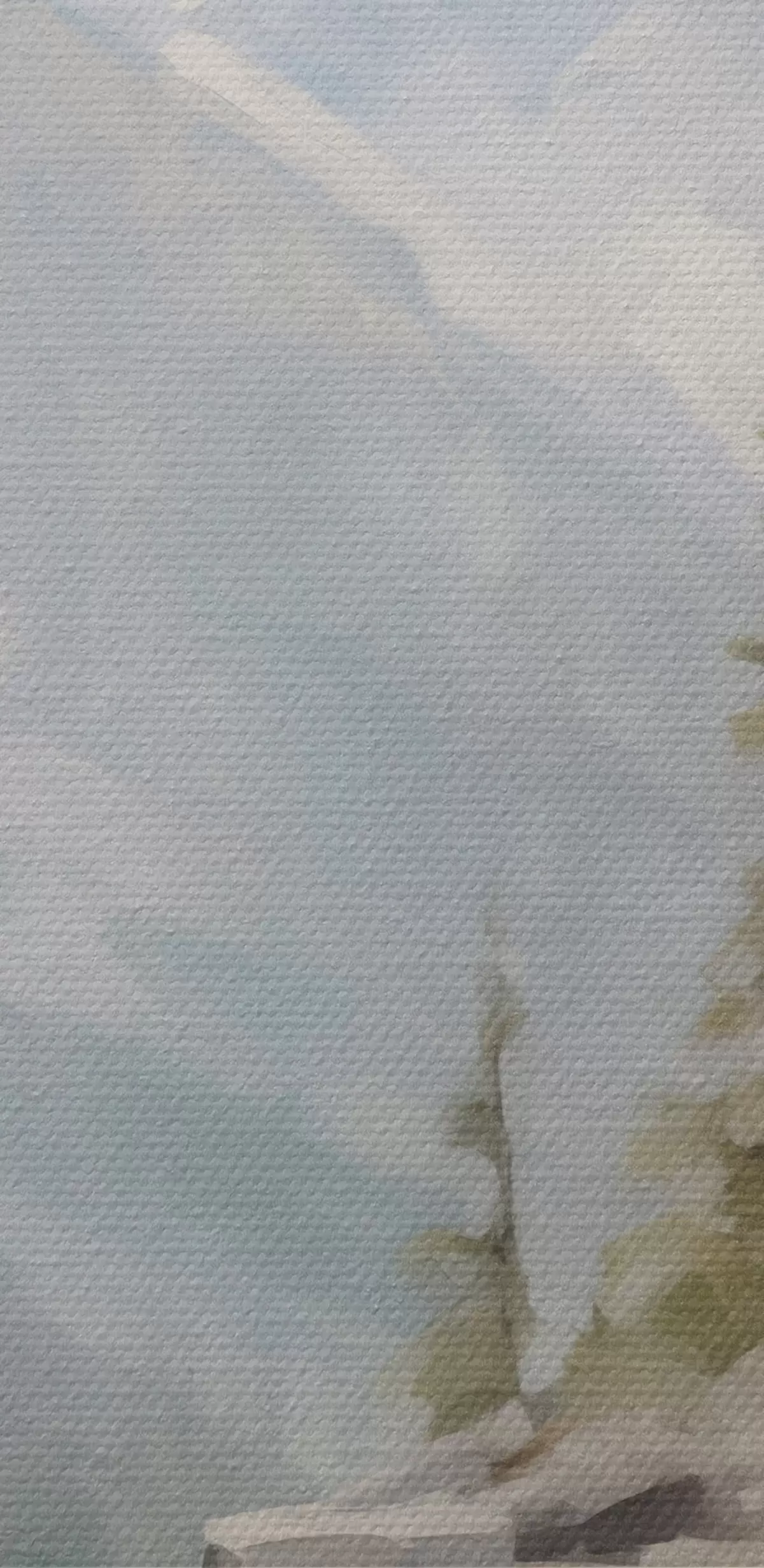 Drobny splot nici na tym płótnie przypomina powierzchnię profesjonalnych płócien artystycznych.