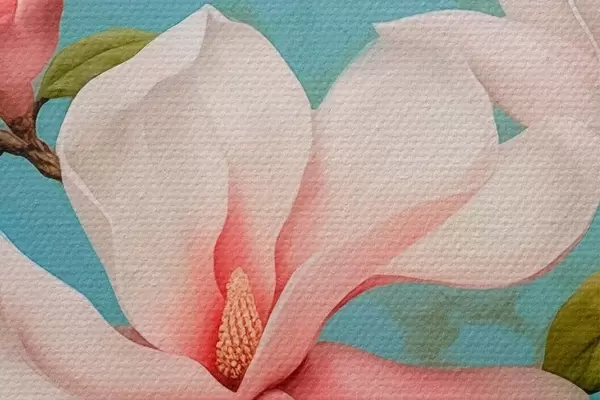 Drobny splot nici na tym płótnie przypomina powierzchnię profesjonalnych płócien artystycznych.