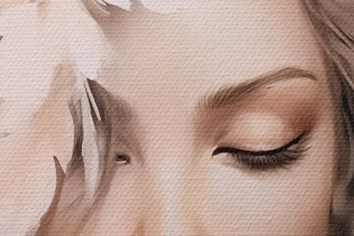 Drobny splot nici na tym płótnie przypomina powierzchnię profesjonalnych płócien artystycznych.