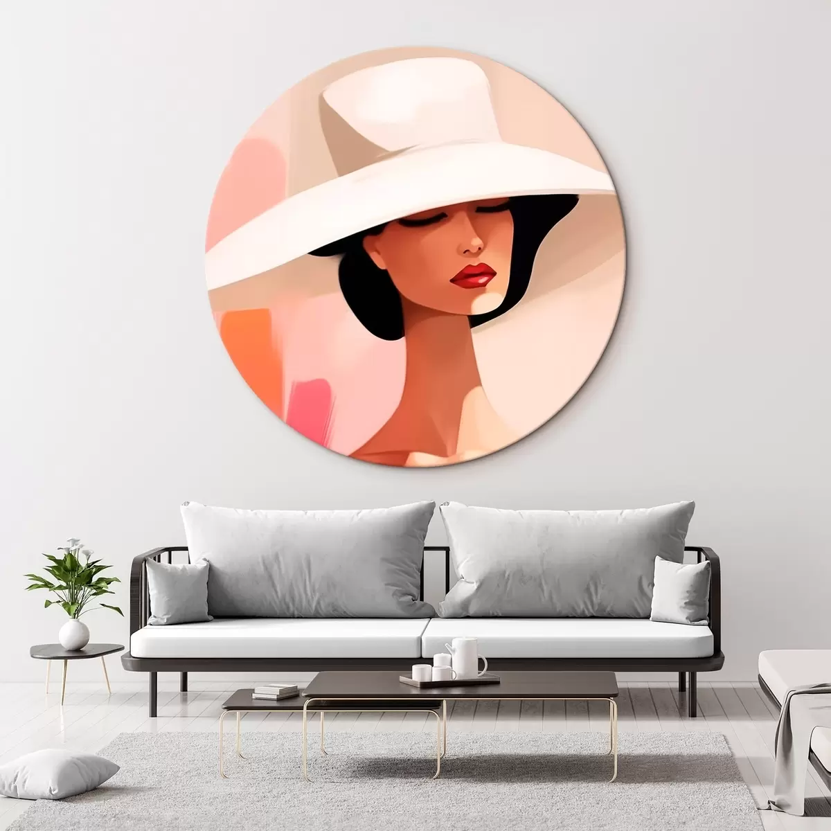 Okrągły obraz Kobieta w kapeluszu Nr r46229
