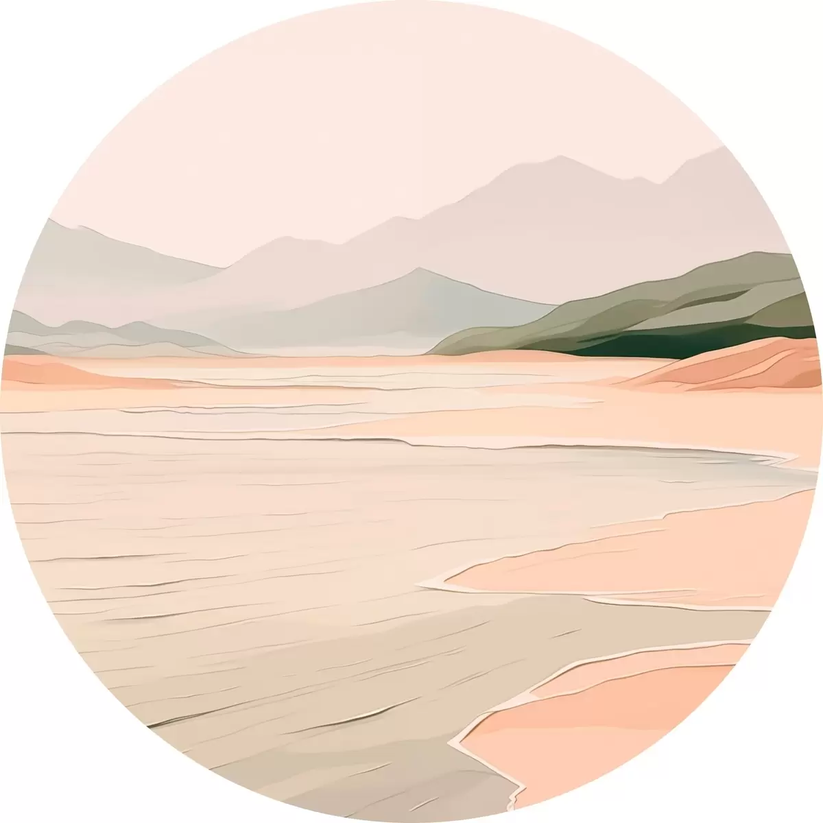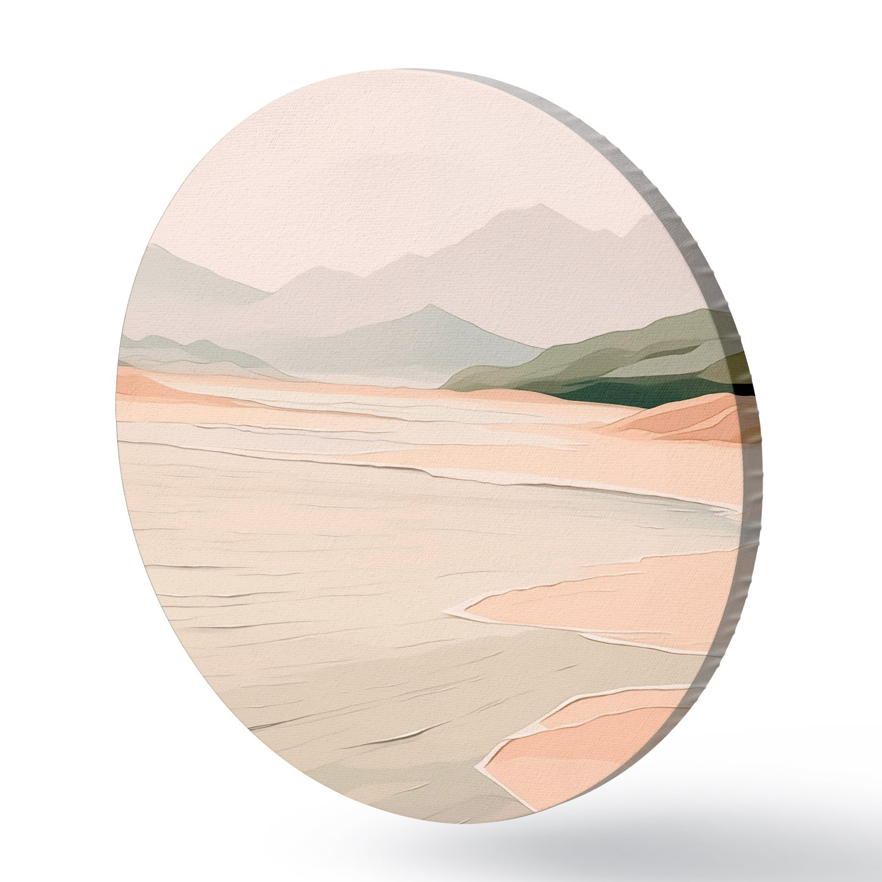 Okrągłe obrazy Minimalistyczny krajobraz z górami i brzegiem r46248