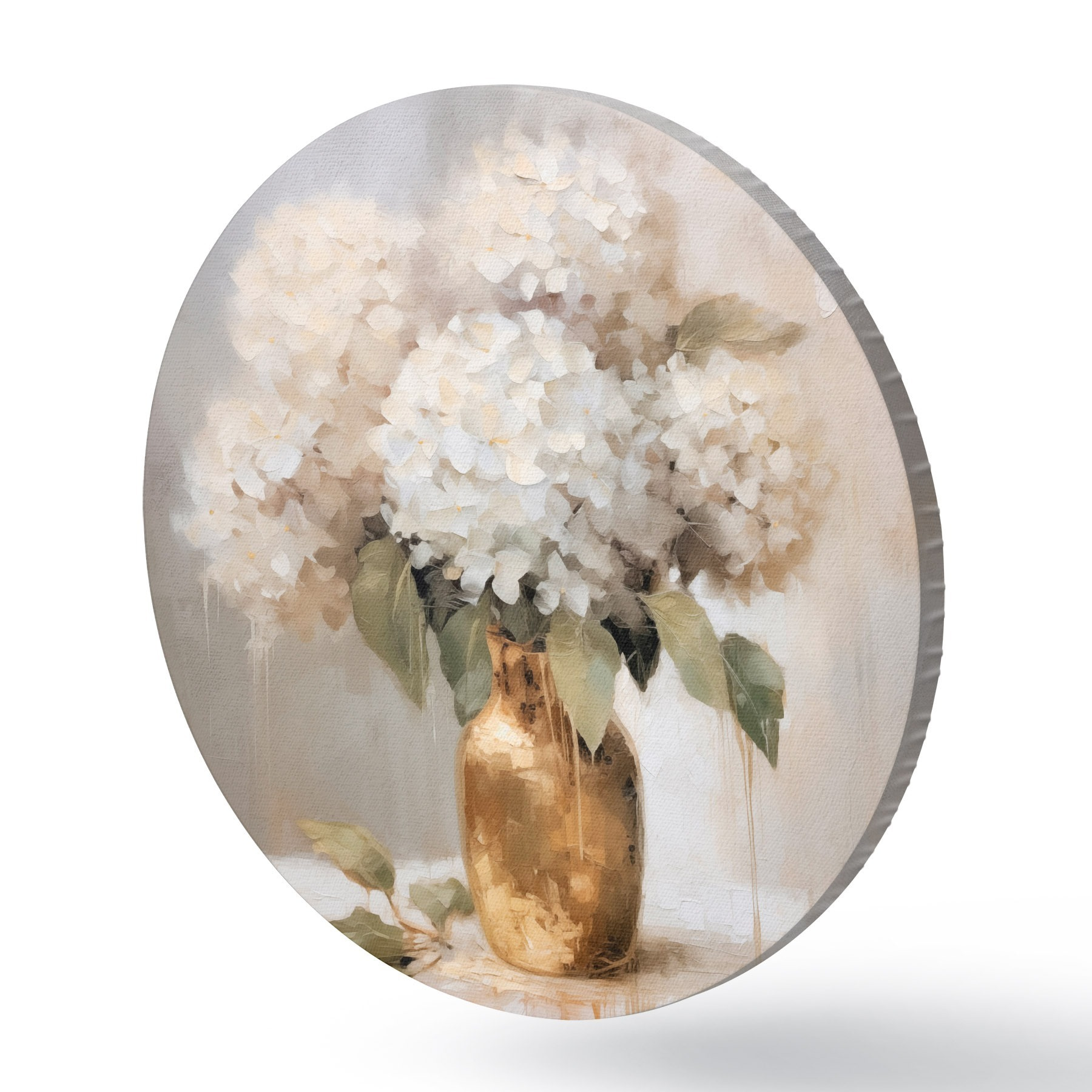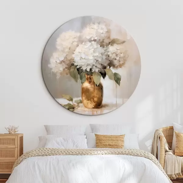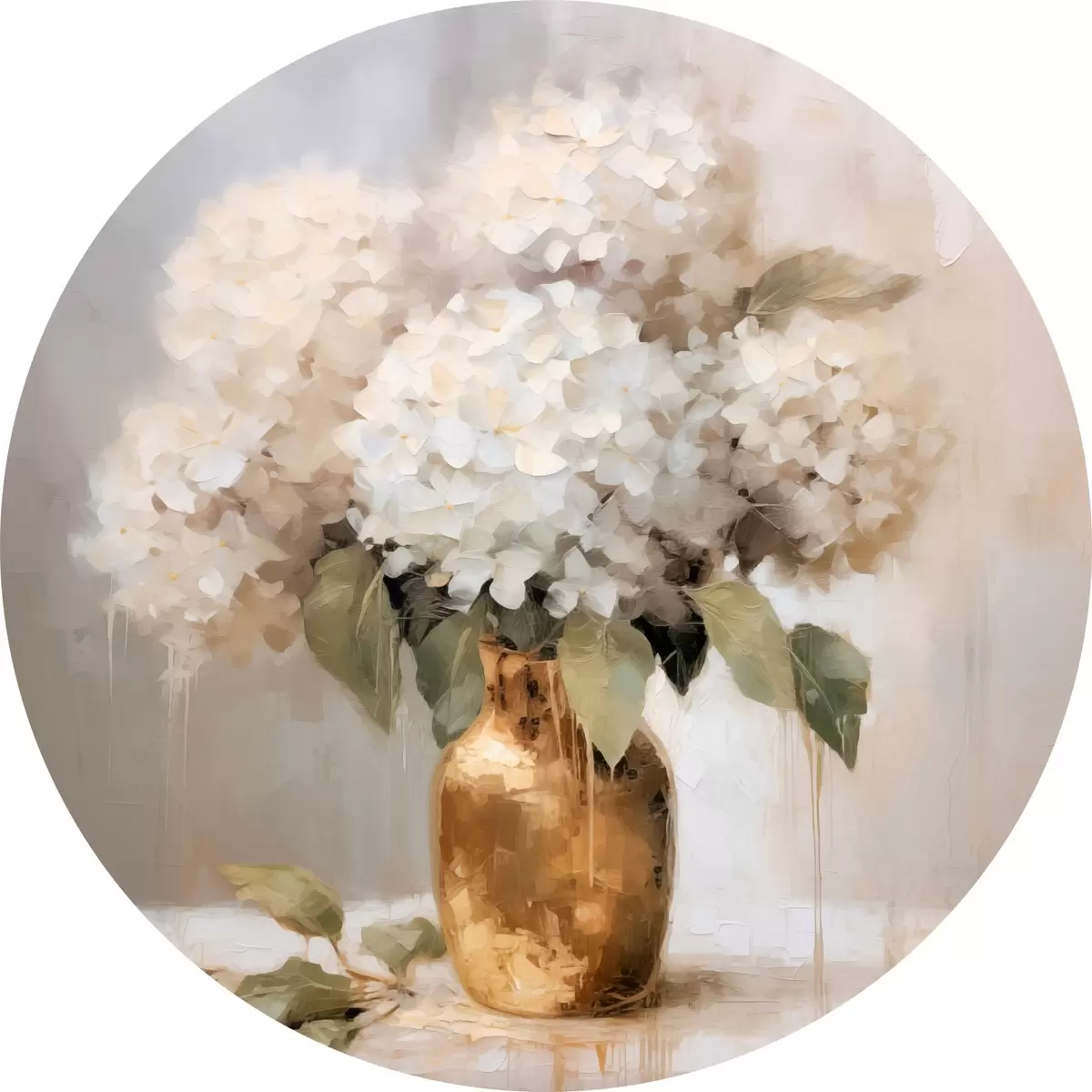 Okrągły obraz Delikatny bukiet hortensji w wazonie Nr r46263
