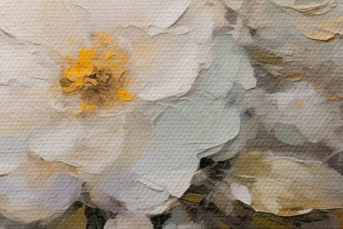 Drobny splot nici na tym płótnie przypomina powierzchnię profesjonalnych płócien artystycznych.