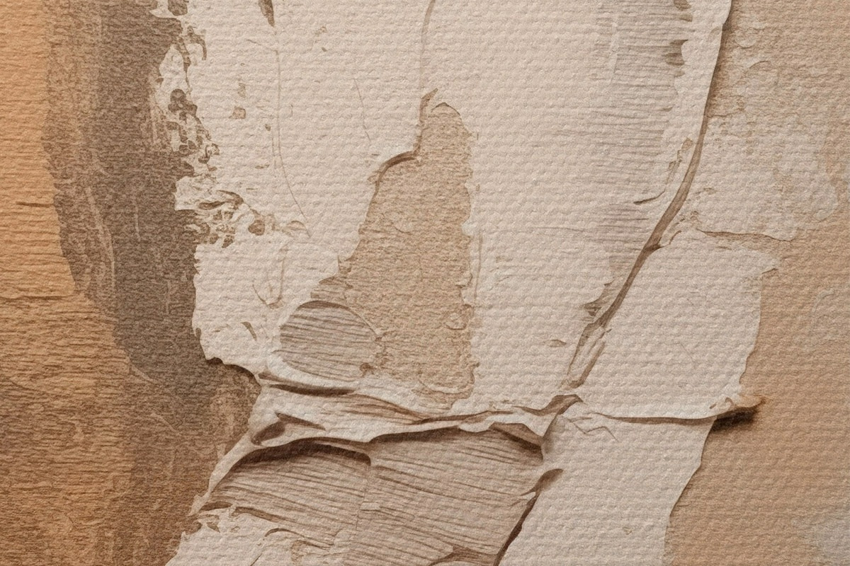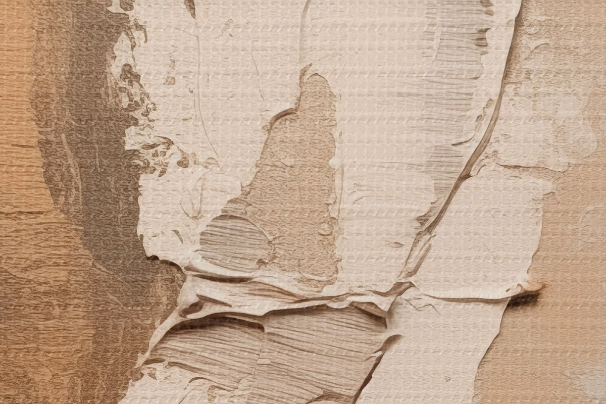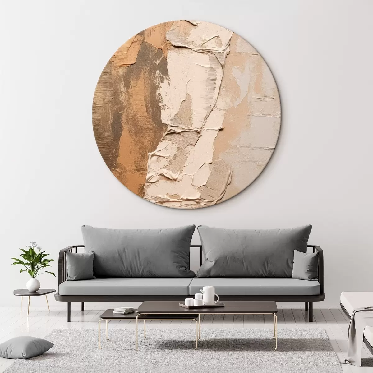 Okrągły obraz Malarstwo abstrakcyjne z grubymi pociągnięciami pędzla, beżowymi i brązowymi odcieniami, teksturowaną powierzchnią, neutralną paletą kolorów Nr r46272
