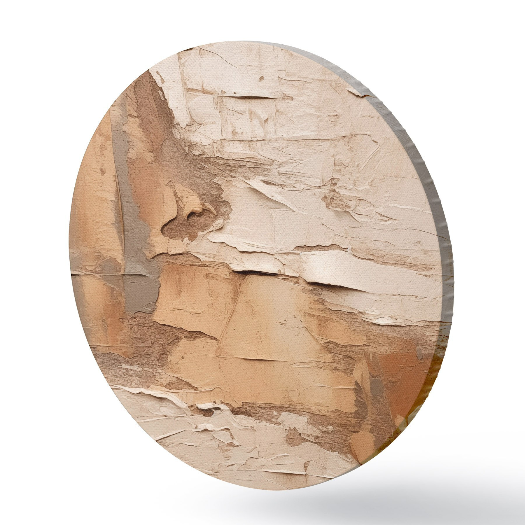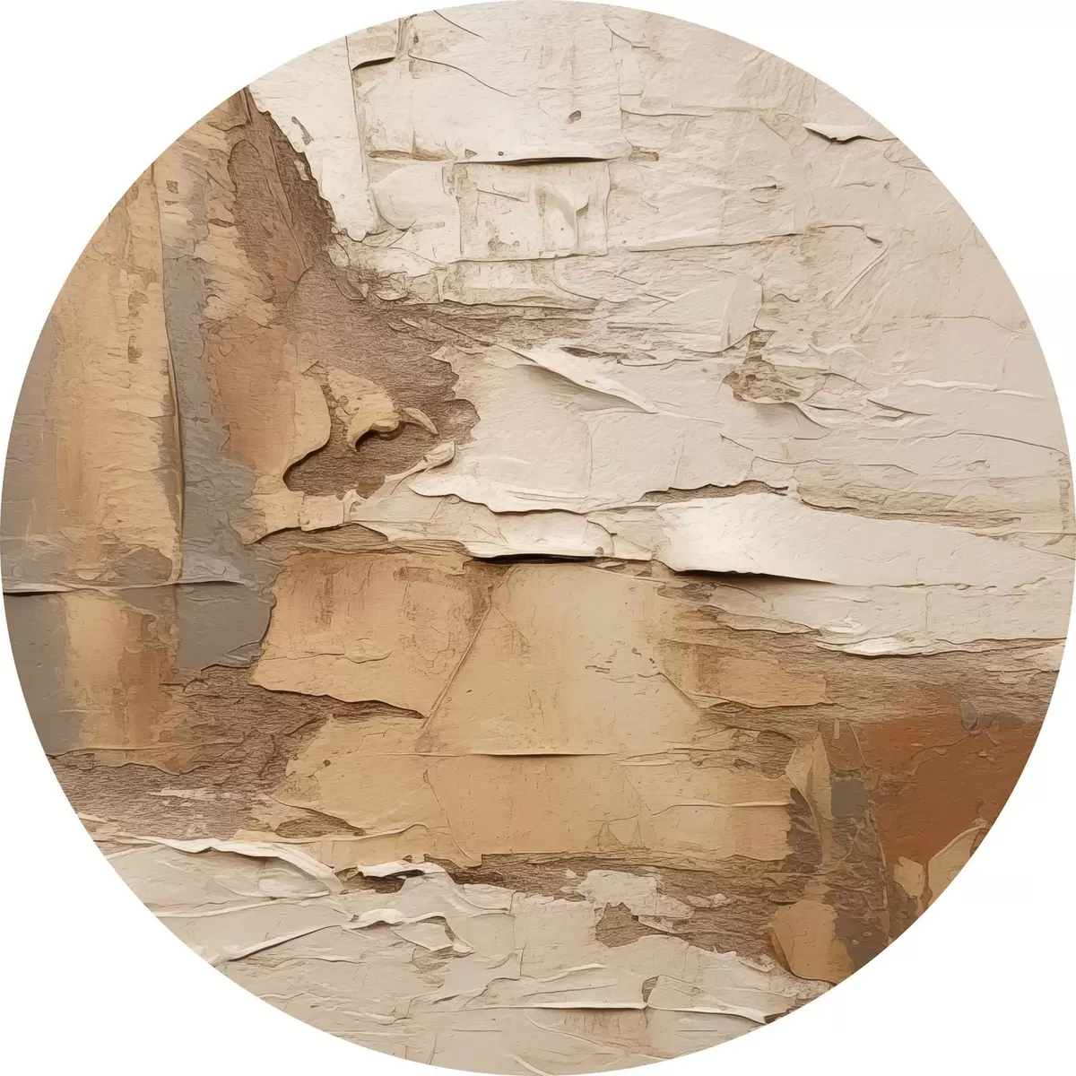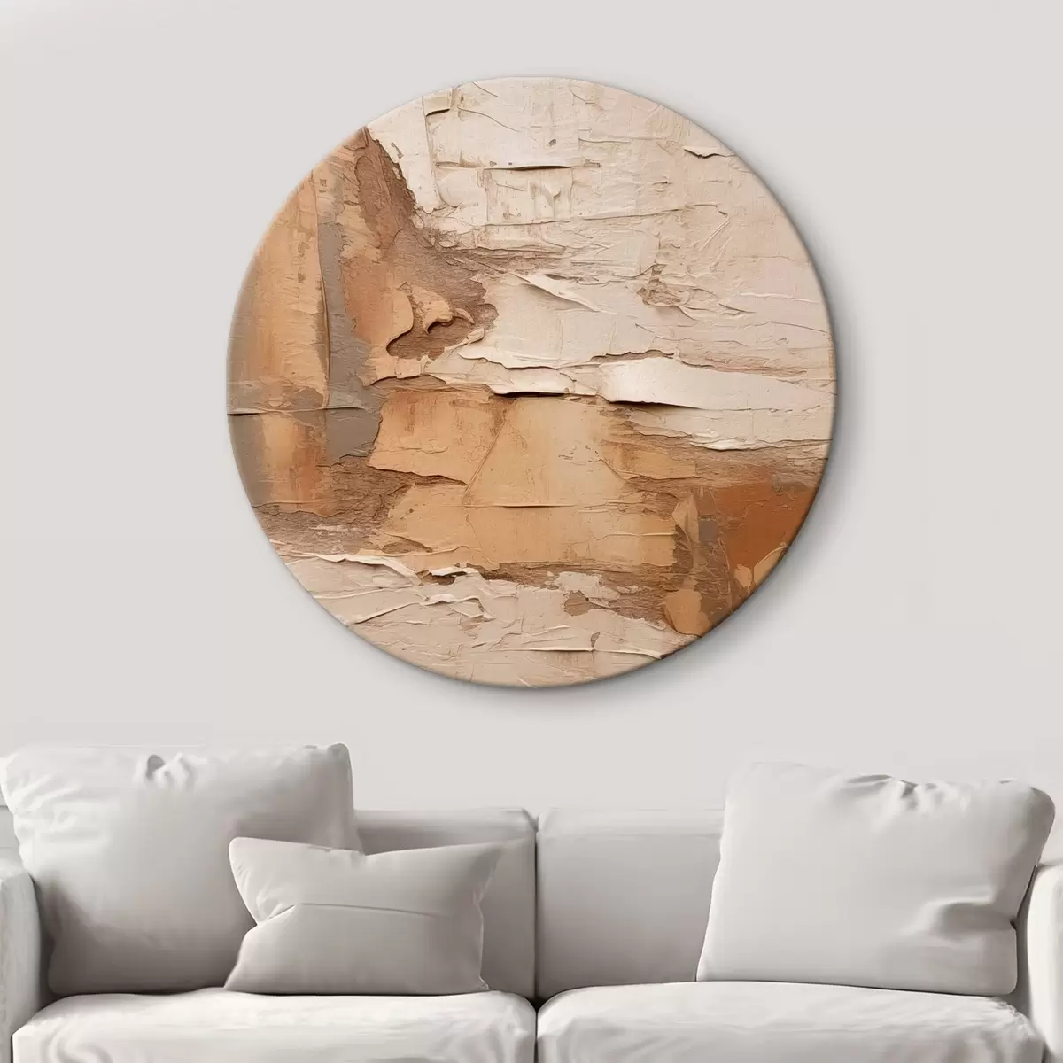 Okrągły obraz Malarstwo abstrakcyjne z grubymi pociągnięciami pędzla, beżowymi i brązowymi odcieniami, teksturowaną powierzchnią, neutralną paletą kolorów Nr r46273
