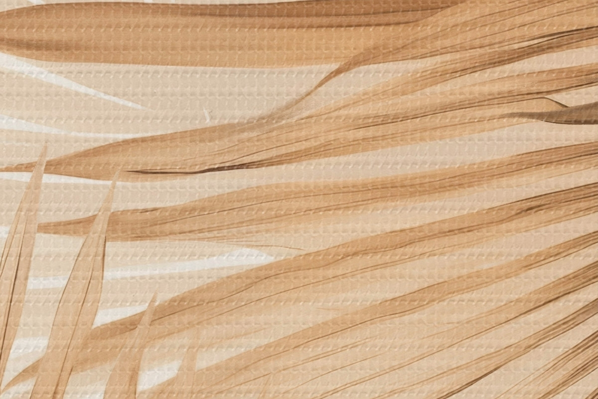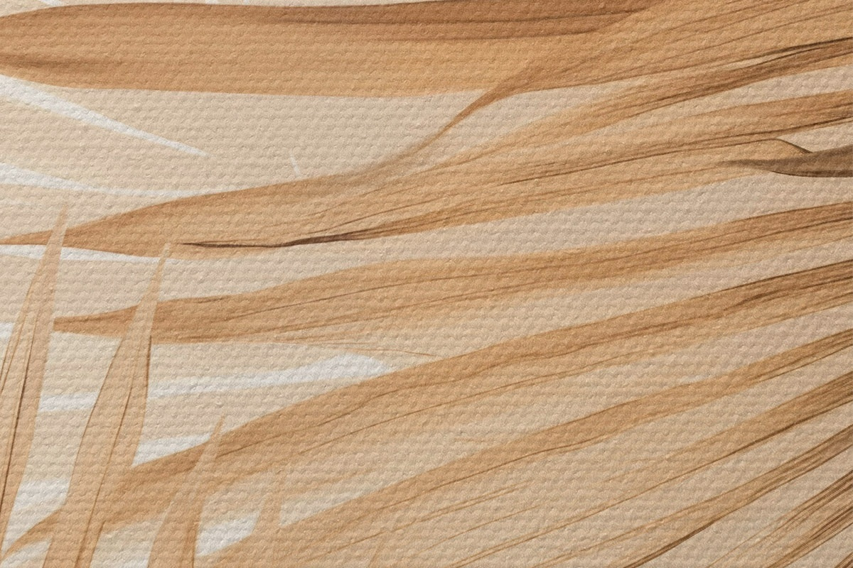 Okrągły obraz Abstrakcyjne liście palmowe w brązowych odcieniach, tropikalne, botaniczne, naturalne, minimalistyczne, eleganckie, nowoczesne wzornictwo Nr r46275