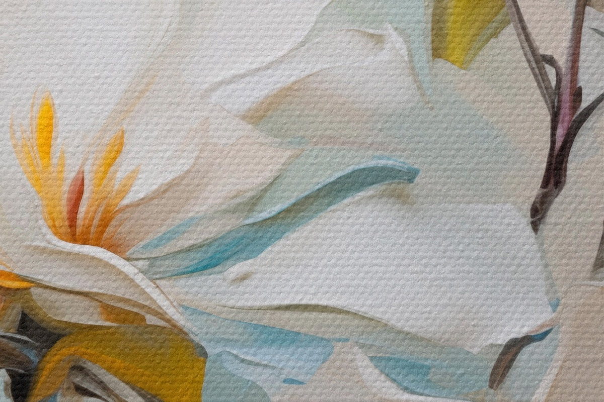 Drobny splot nici na tym płótnie przypomina powierzchnię profesjonalnych płócien artystycznych.