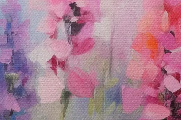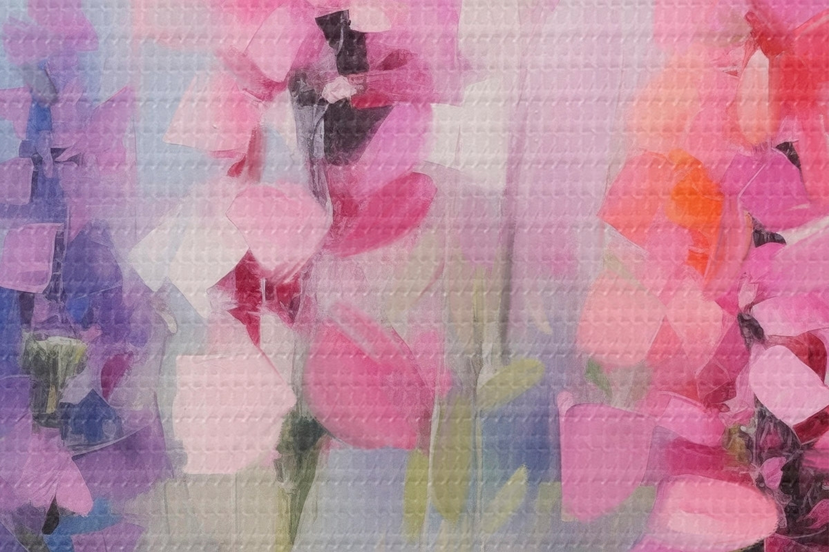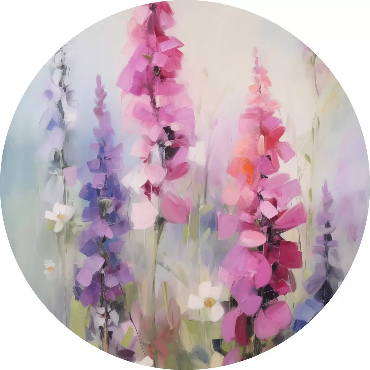 Okrągły obraz Różowe i fioletowe kwiaty z białymi stokrotkami na polu, delikatne pociągnięcia pędzla, pastelowe kolory, styl impresjonistyczny Nr r46279