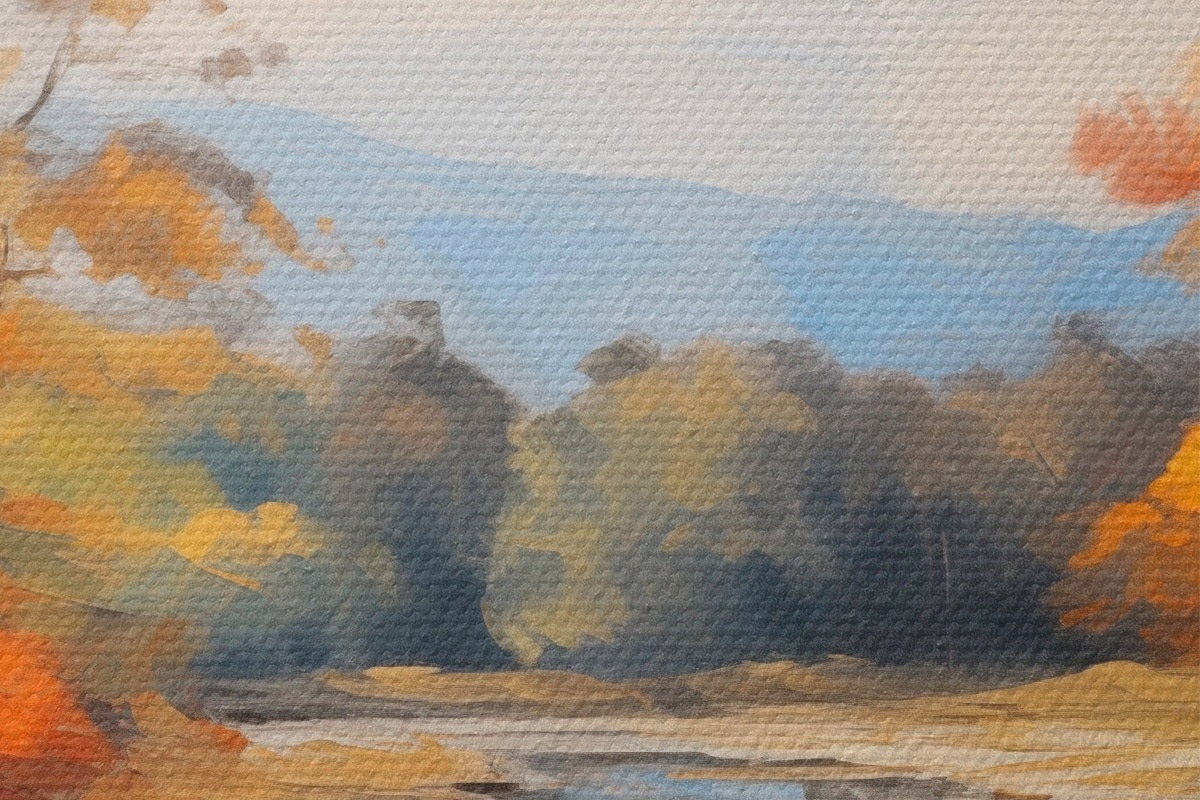 Drobny splot nici na tym płótnie przypomina powierzchnię profesjonalnych płócien artystycznych.