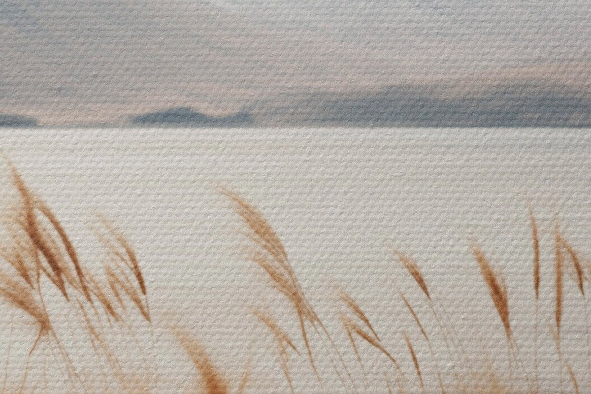 Drobny splot nici na tym płótnie przypomina powierzchnię profesjonalnych płócien artystycznych.
