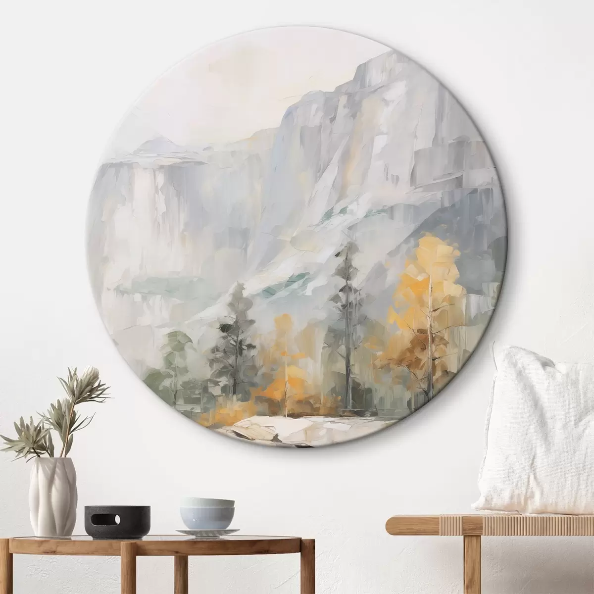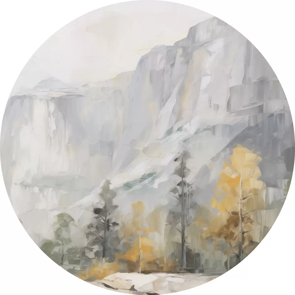 Okrągły obraz Krajobraz lasu przed górami, imitacja obrazu Nr r46299