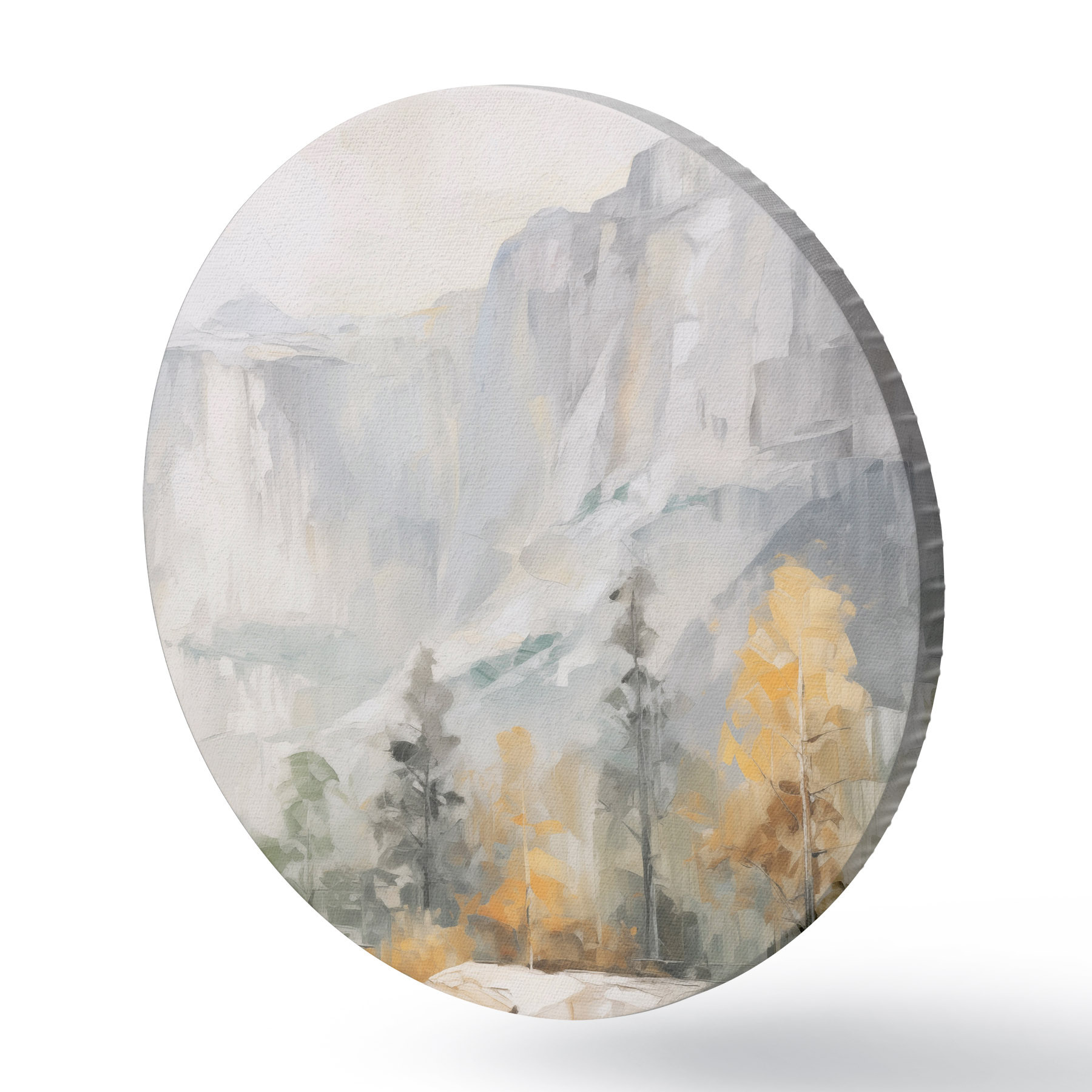 Okrągłe obrazy Krajobraz lasu przed górami, imitacja obrazu r46299
