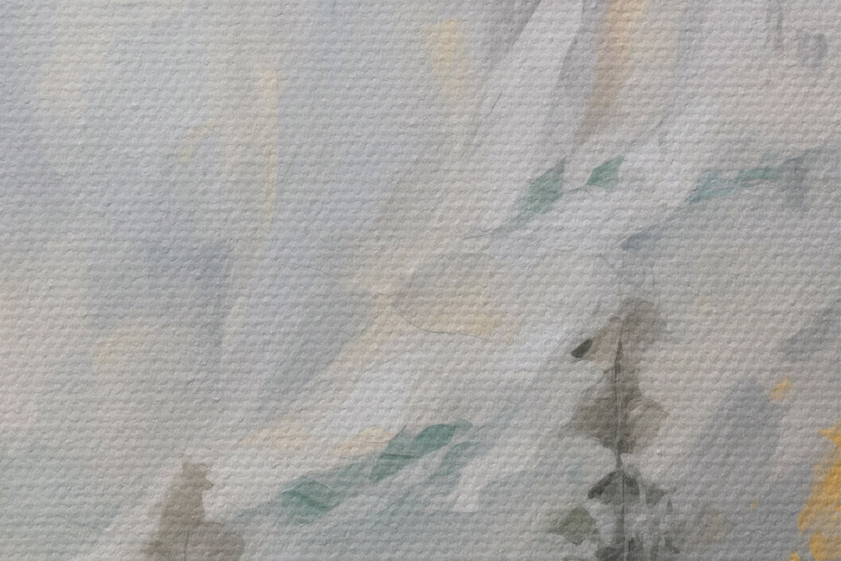 Drobny splot nici na tym płótnie przypomina powierzchnię profesjonalnych płócien artystycznych.