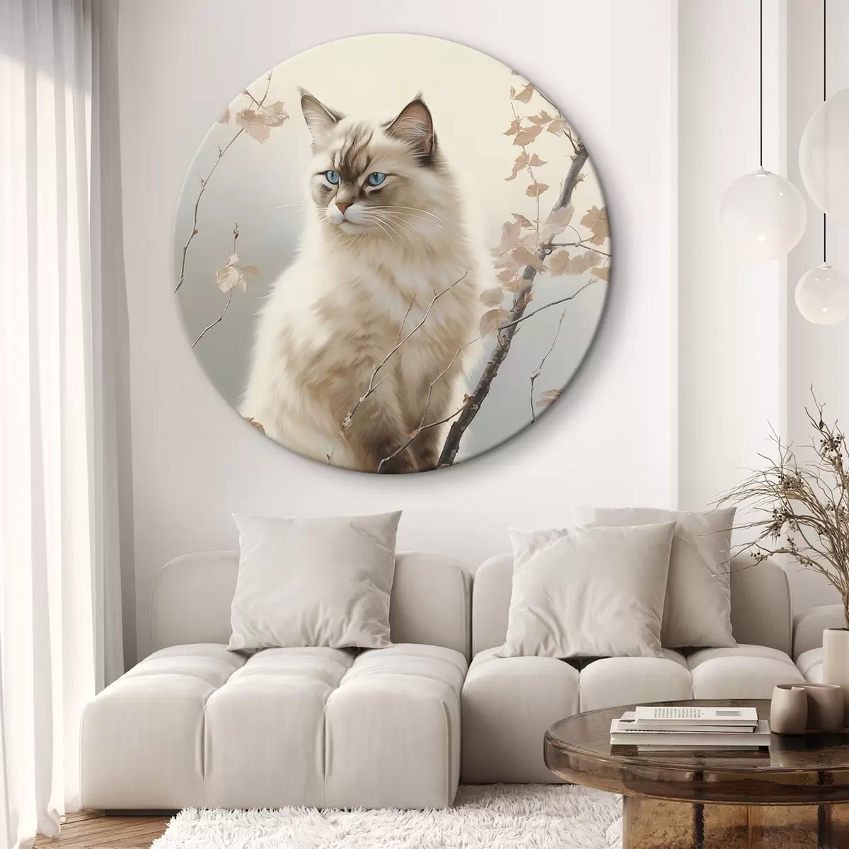 Okrągły obraz Kot na gałęzi drzewa Nr r46300