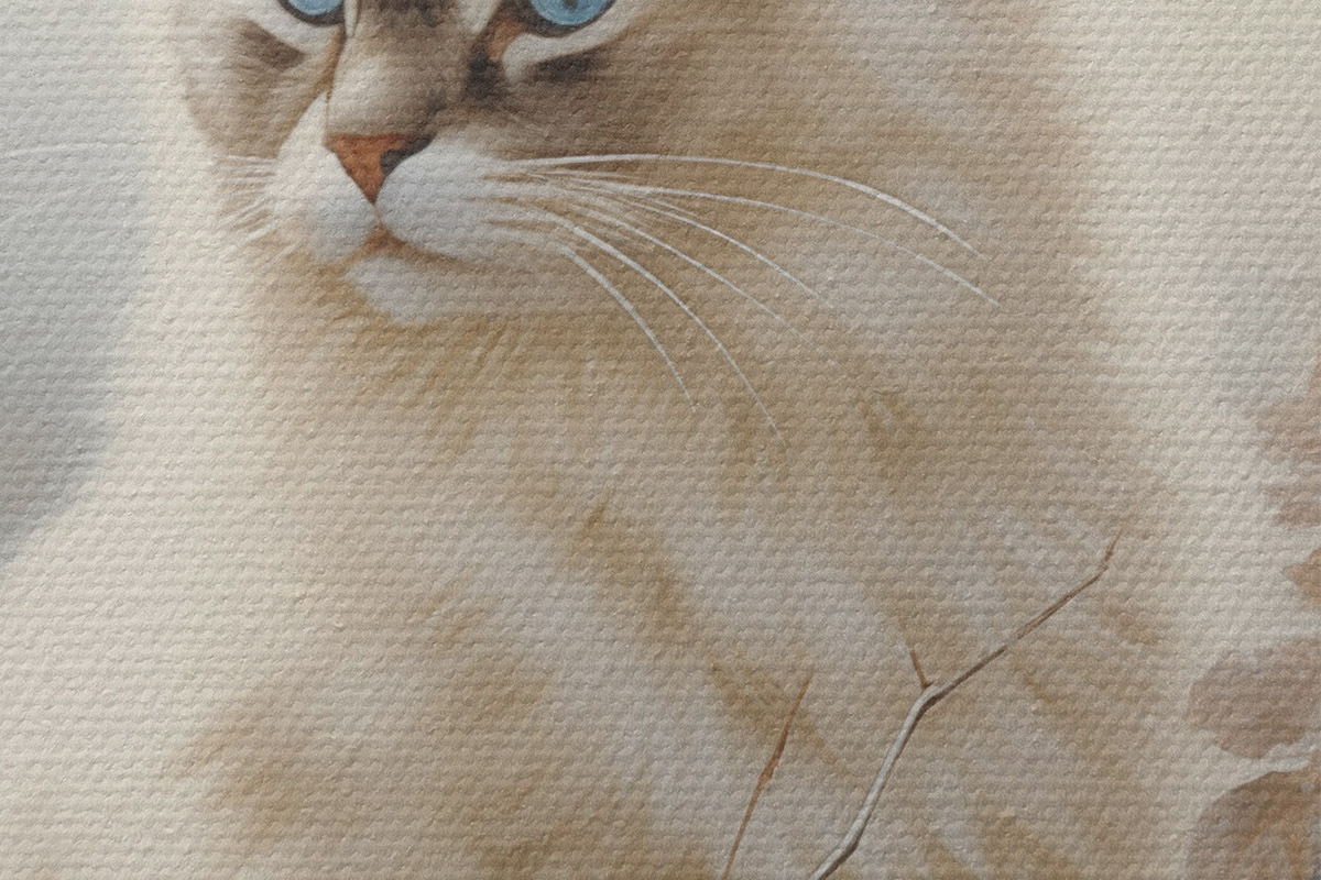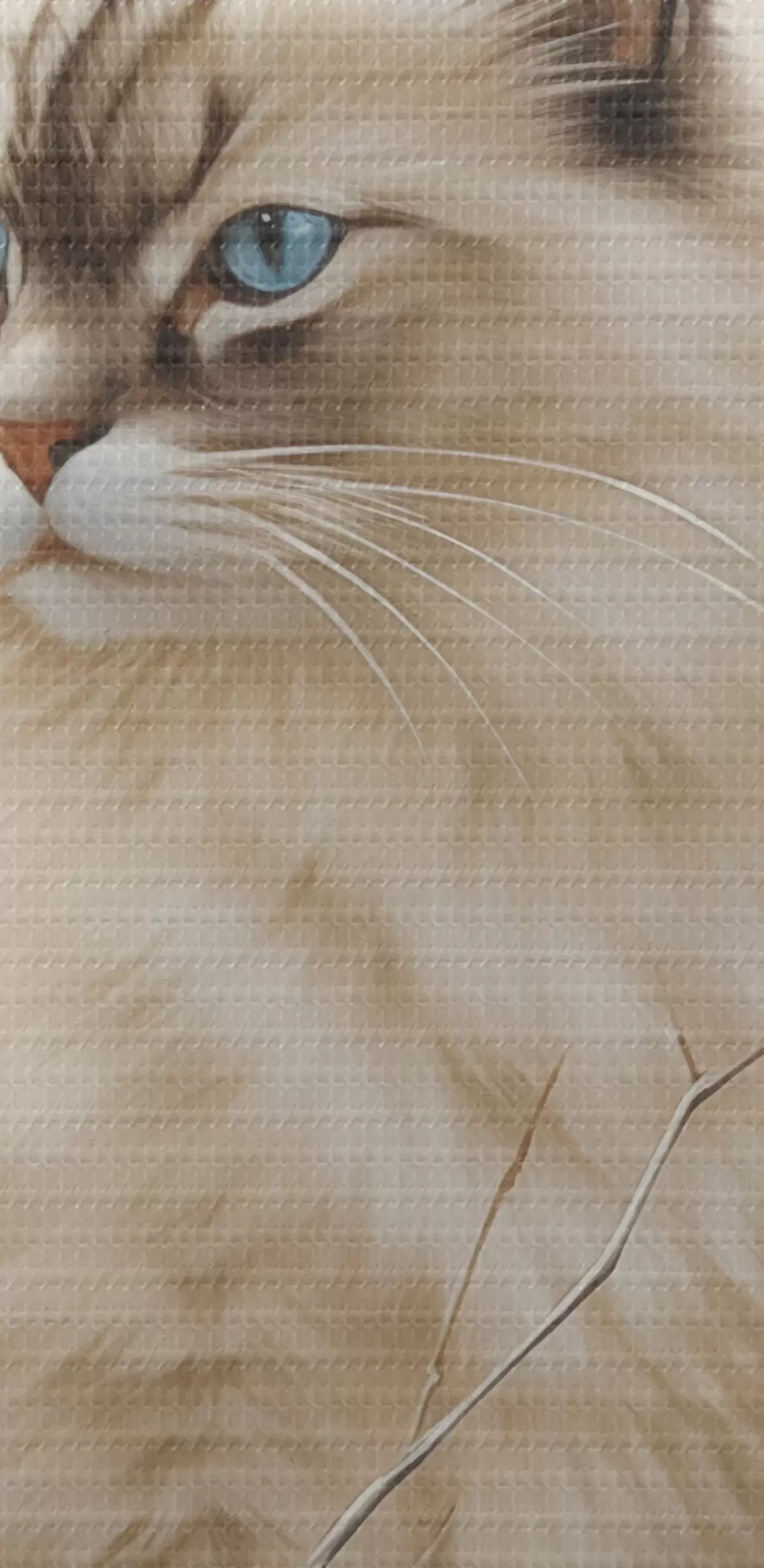 Drobny splot nici na tym płótnie przypomina powierzchnię profesjonalnych płócien artystycznych.