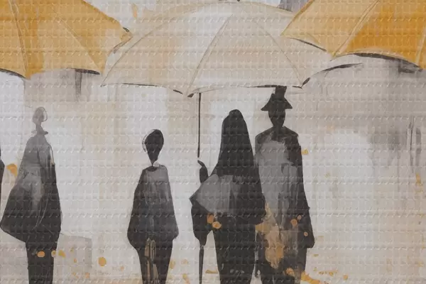 Okrągły obraz Abstrakcja ludzi z parasolami Nr r46304