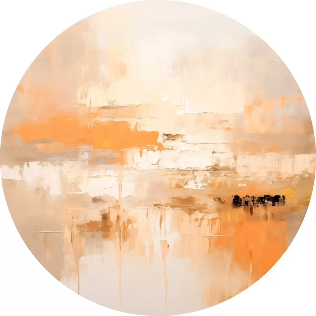 Okrągły obraz Abstrakcja pejzażowa w stylu olejnym w odcieniach pomarańczowym i beżowym Nr r46314