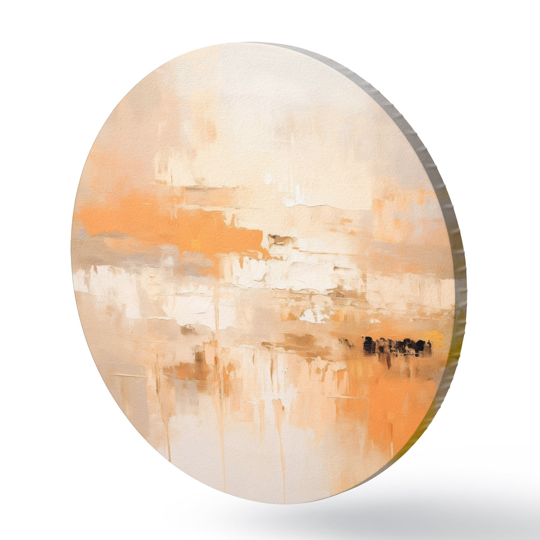 Okrągłe obrazy Abstrakcja pejzażowa w stylu olejnym w odcieniach pomarańczowym i beżowym r46314
