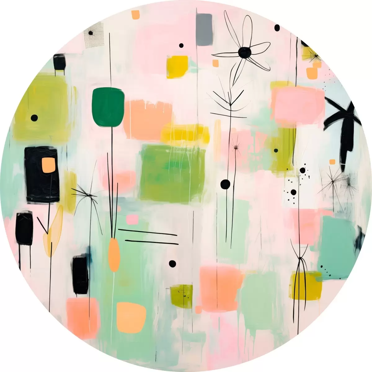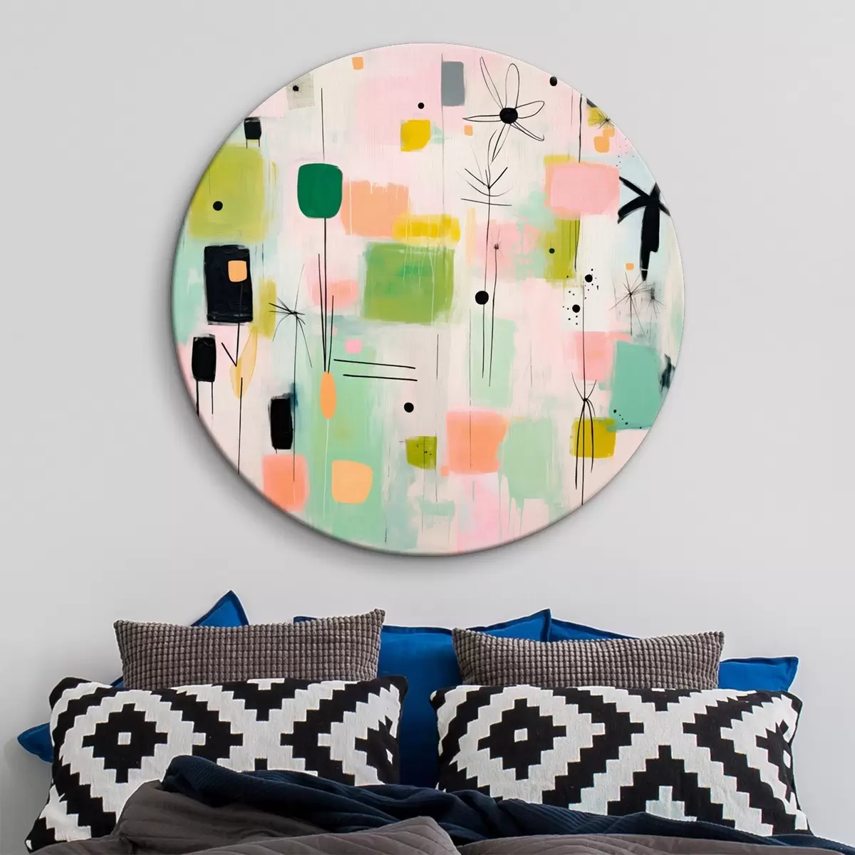 Okrągły obraz Abstrakcyjne kwiaty, lekka kompozycja w stylu olejnym Nr r46325