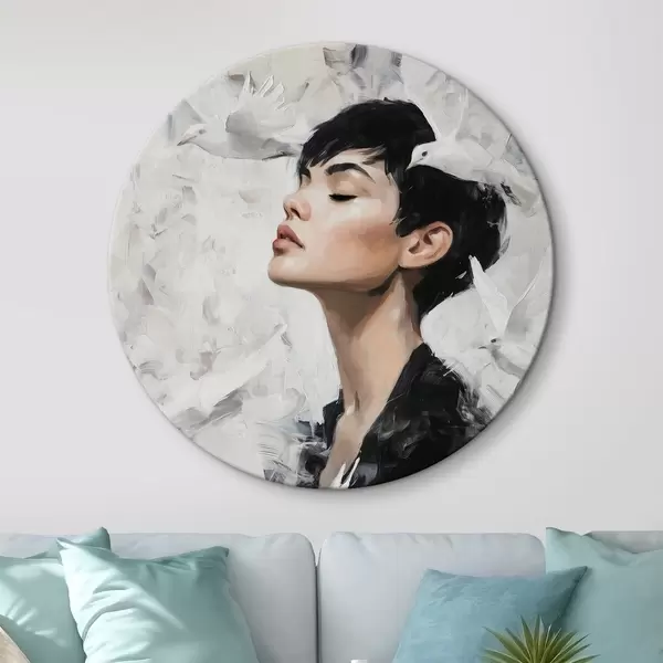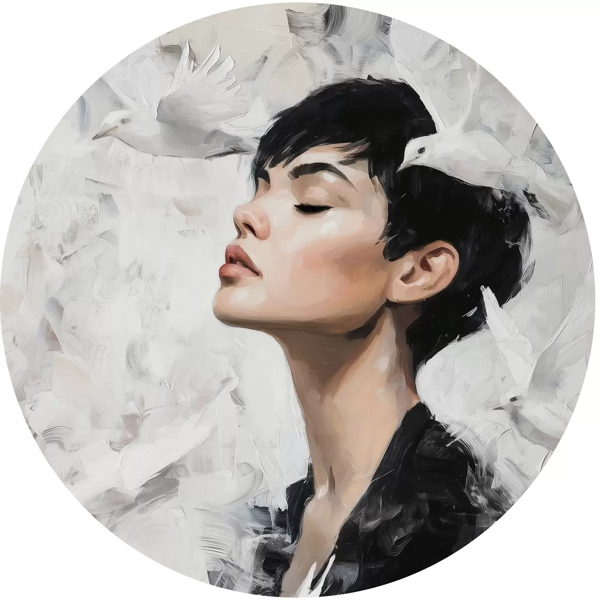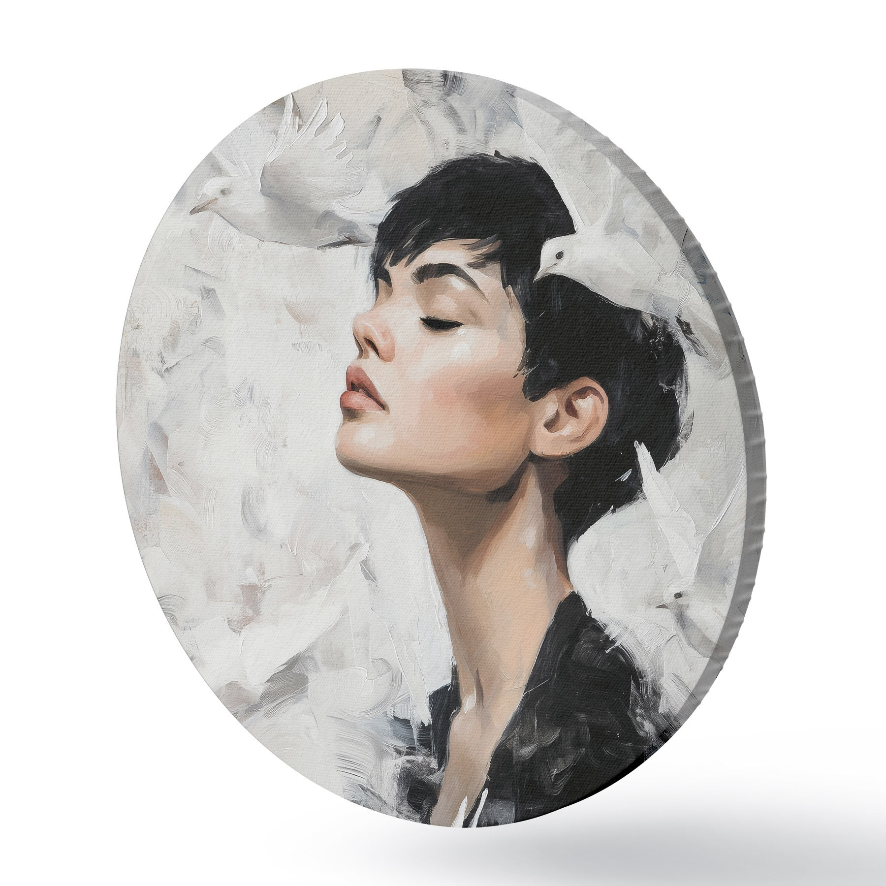 Okrągły obraz Dziewczyna i ptaki Nr r46365