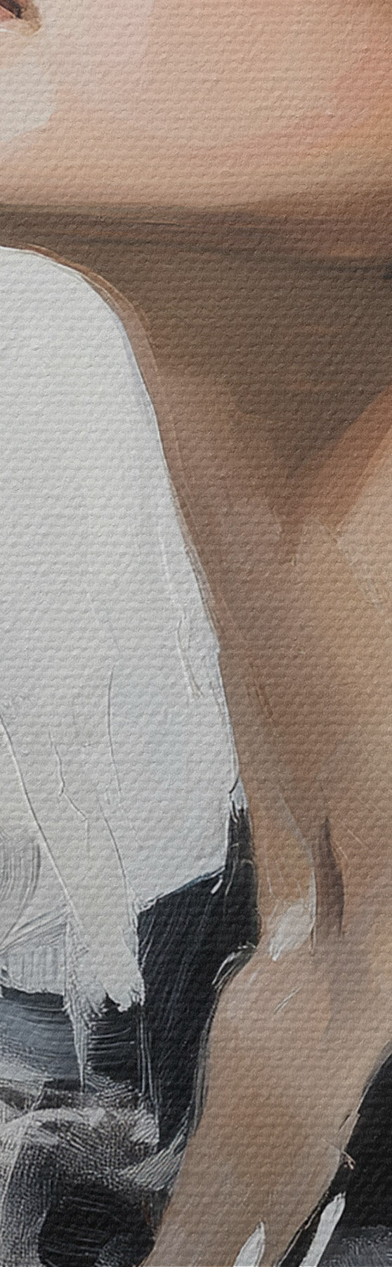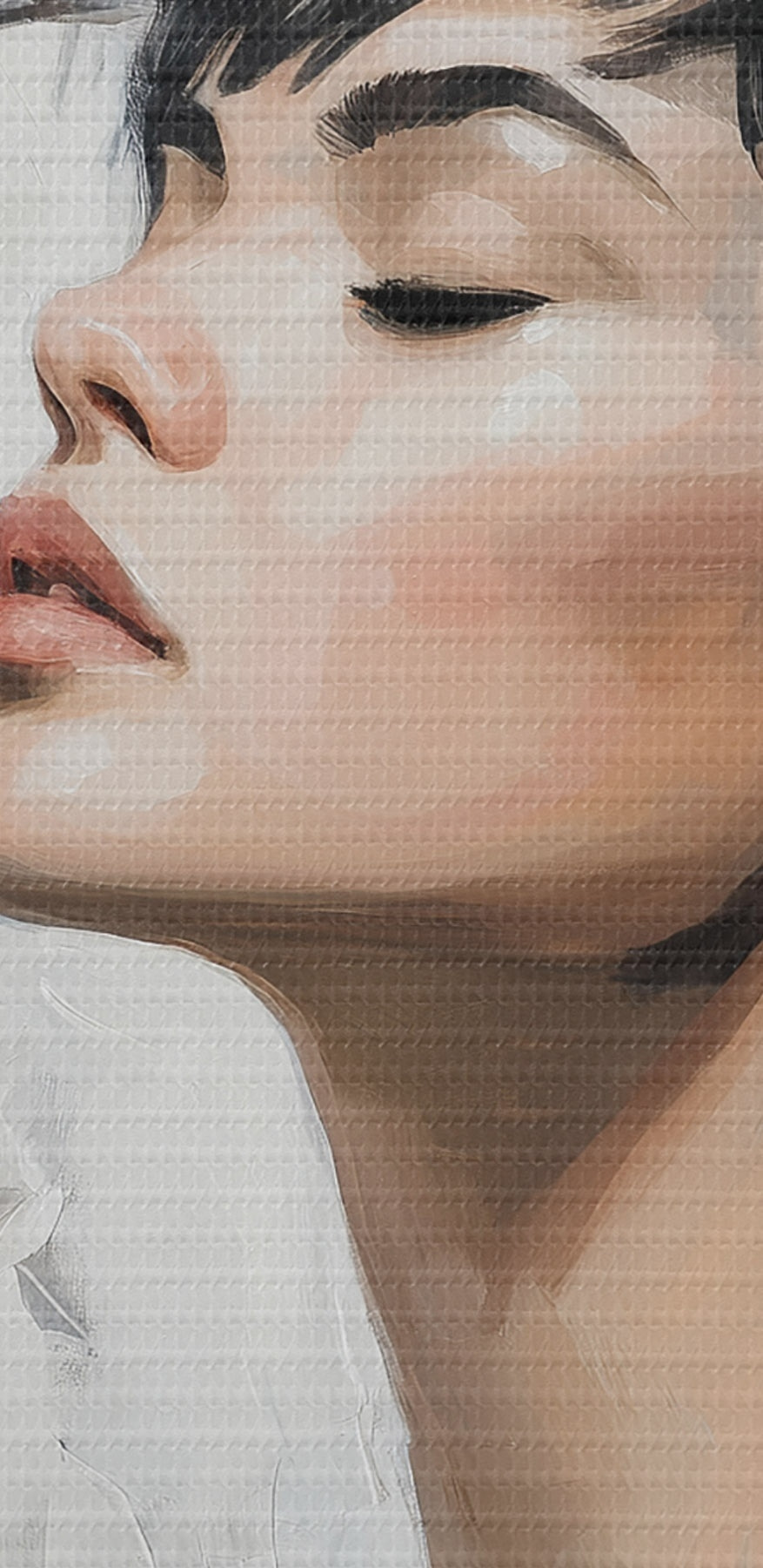 Drobny splot nici na tym płótnie przypomina powierzchnię profesjonalnych płócien artystycznych.