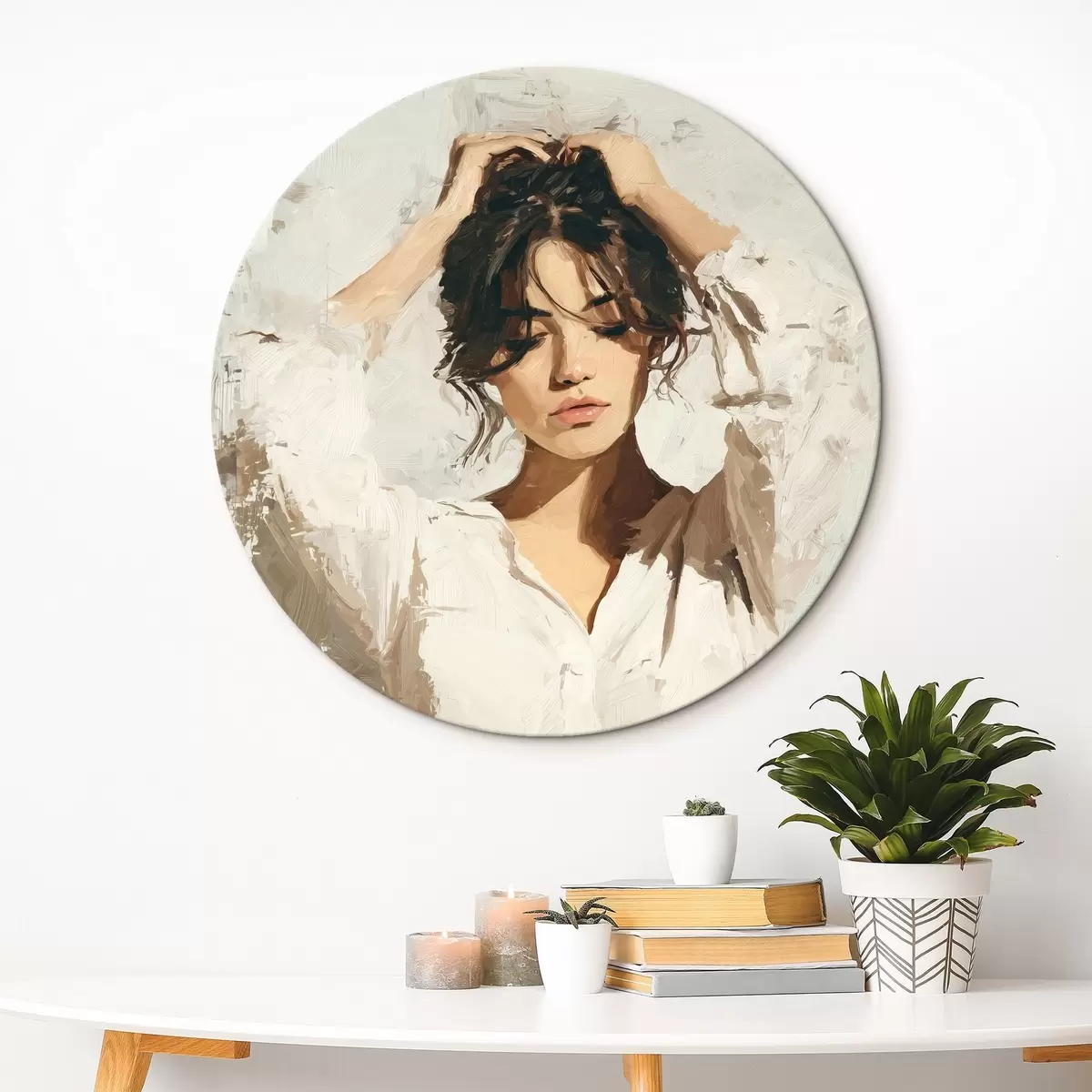Okrągły obraz Kobieta w bieli Nr r46366