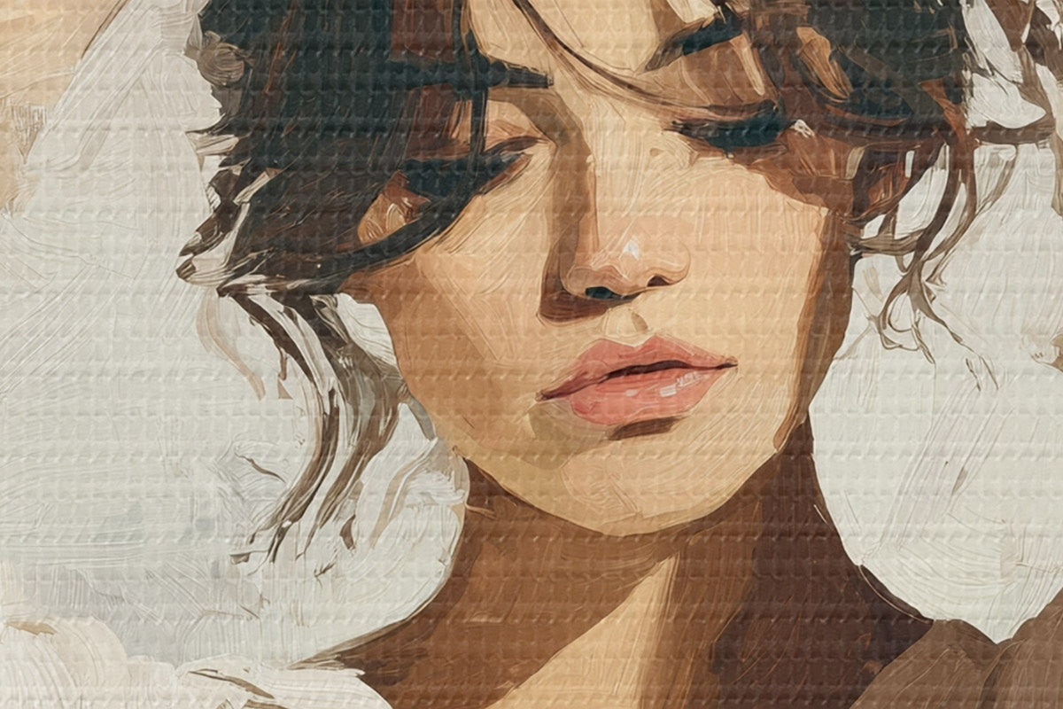 Drobny splot nici na tym płótnie przypomina powierzchnię profesjonalnych płócien artystycznych.