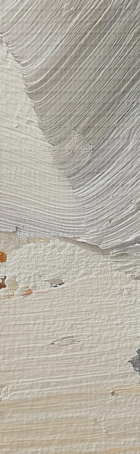 Drobny splot nici na tym płótnie przypomina powierzchnię profesjonalnych płócien artystycznych.