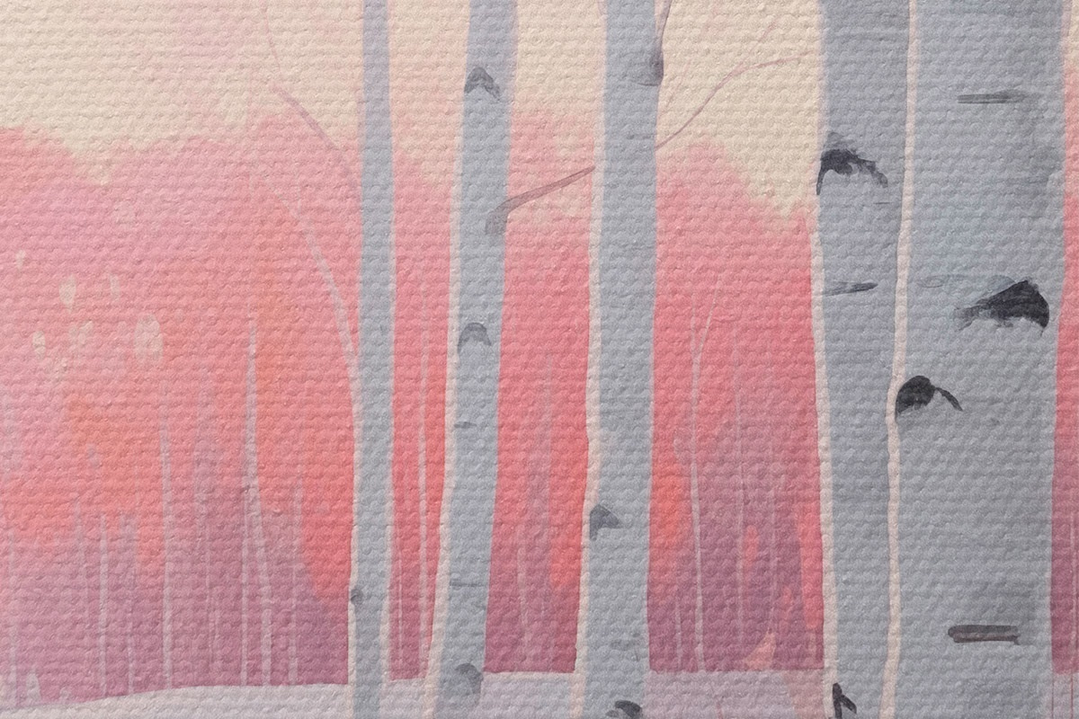 Drobny splot nici na tym płótnie przypomina powierzchnię profesjonalnych płócien artystycznych.