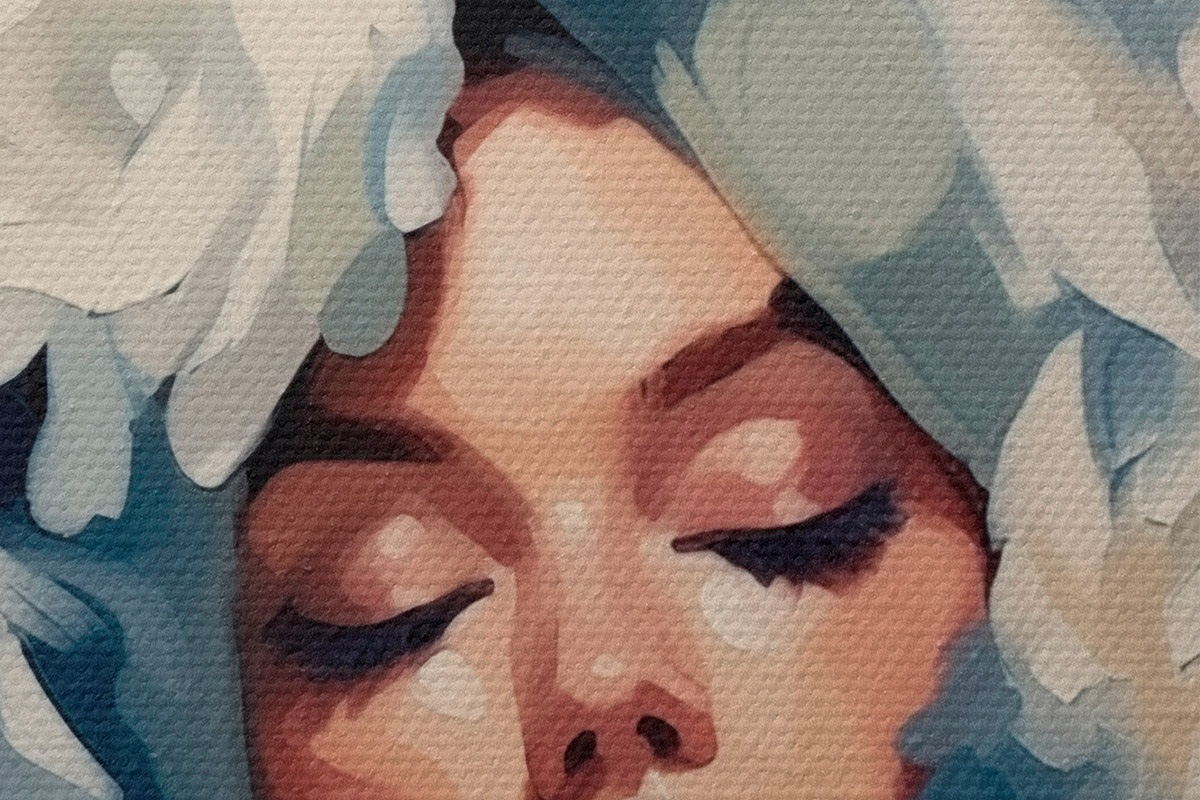 Drobny splot nici na tym płótnie przypomina powierzchnię profesjonalnych płócien artystycznych.