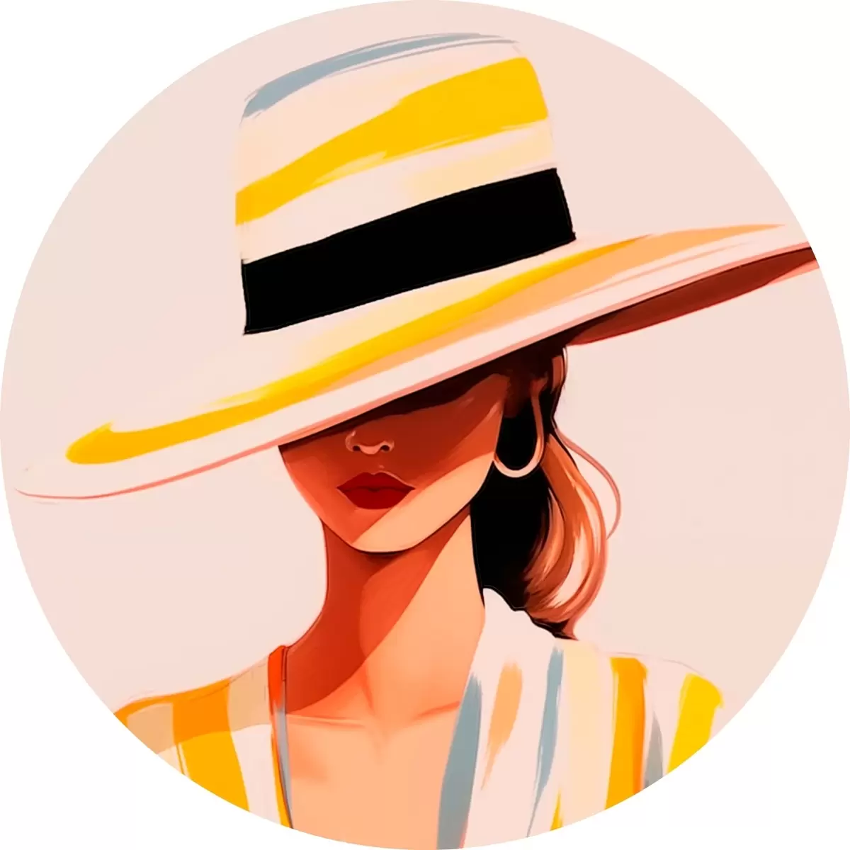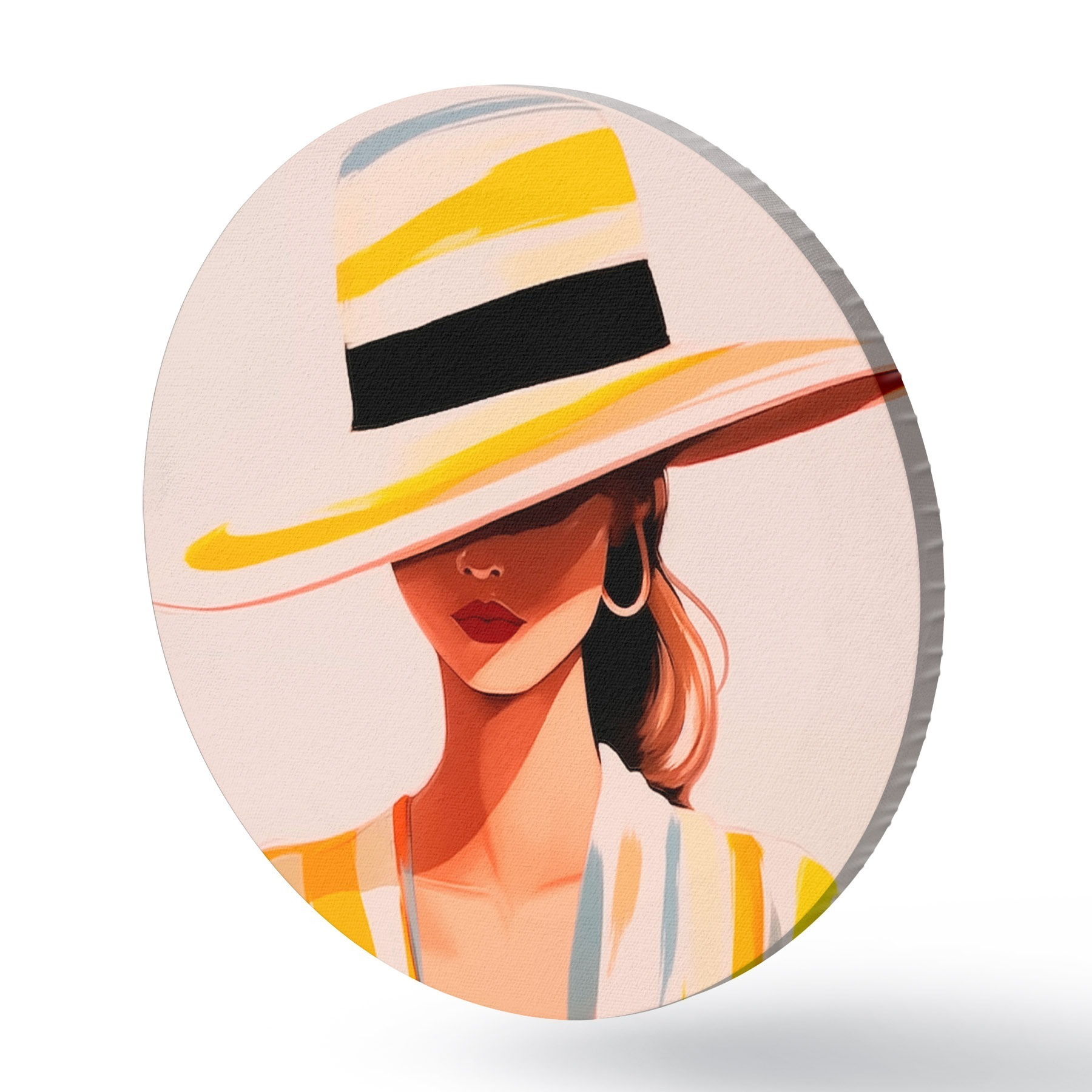 Okrągły obraz Dziewczyna w kapeluszu Nr r46421