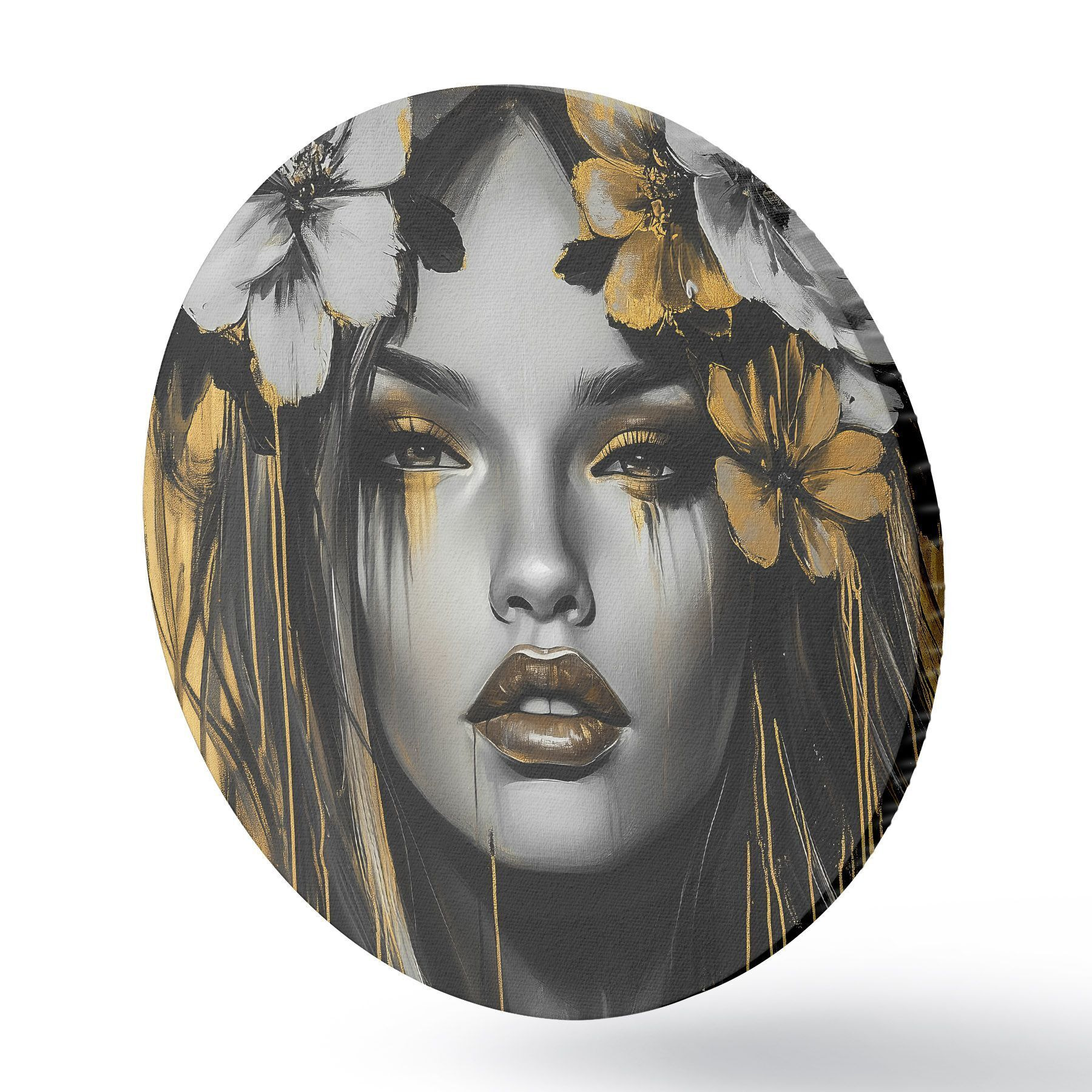 Okrągły obraz Abstrakcyjny portret kobiety z kwiatami Nr r46454