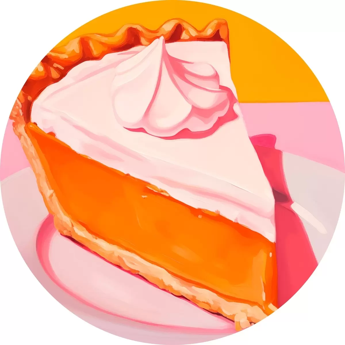 Okrągły obraz Kawałek ciasta dyniowego. Ilustracja w stylu pop art. Nr r46462