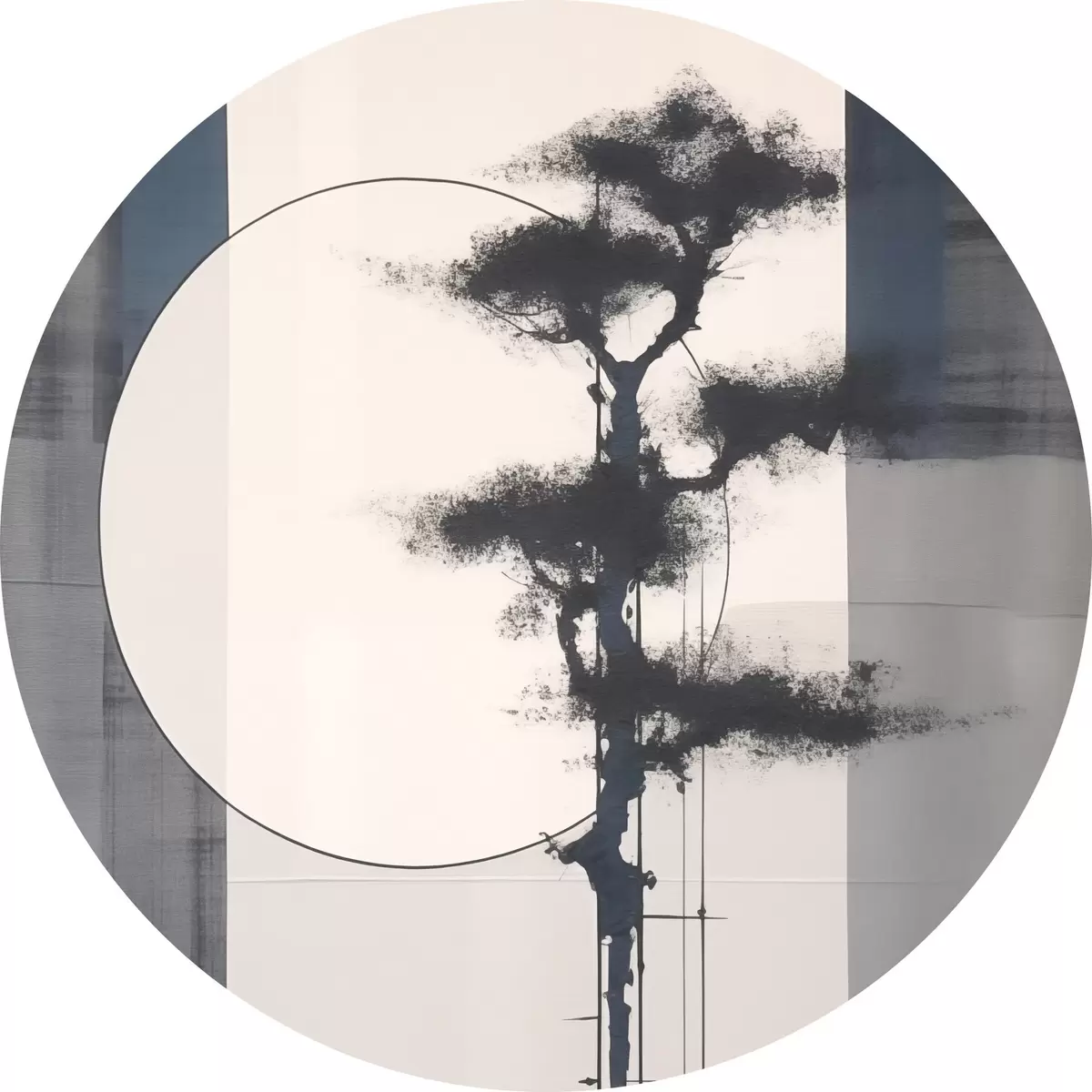 Okrągłe obrazy Abstrakcja. Drzewo i słońce. Japoński minimalizm. r46463