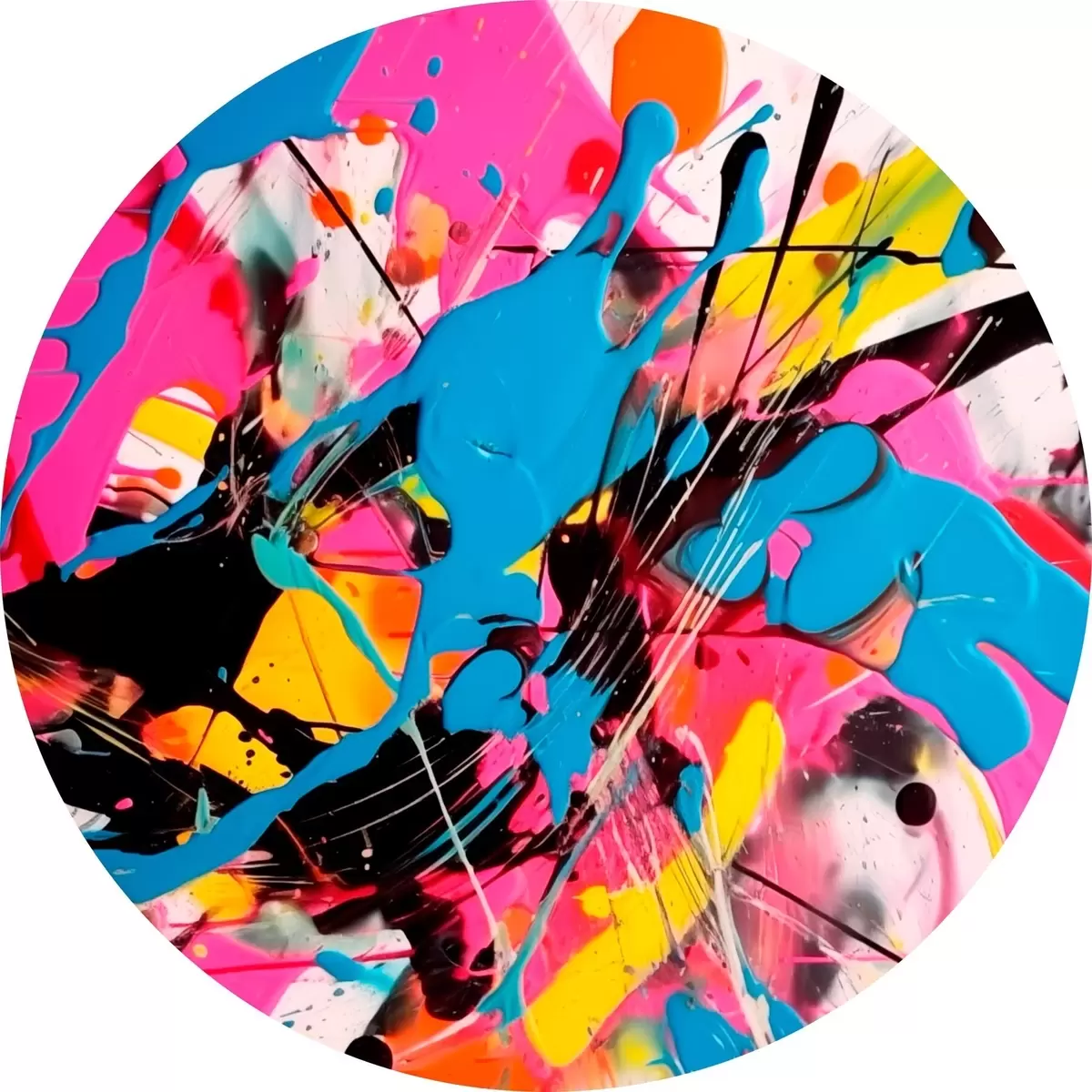 Okrągły obraz Jasny plamka farby. Styl abstrakcyjny z efektem kapania. Nr r46478