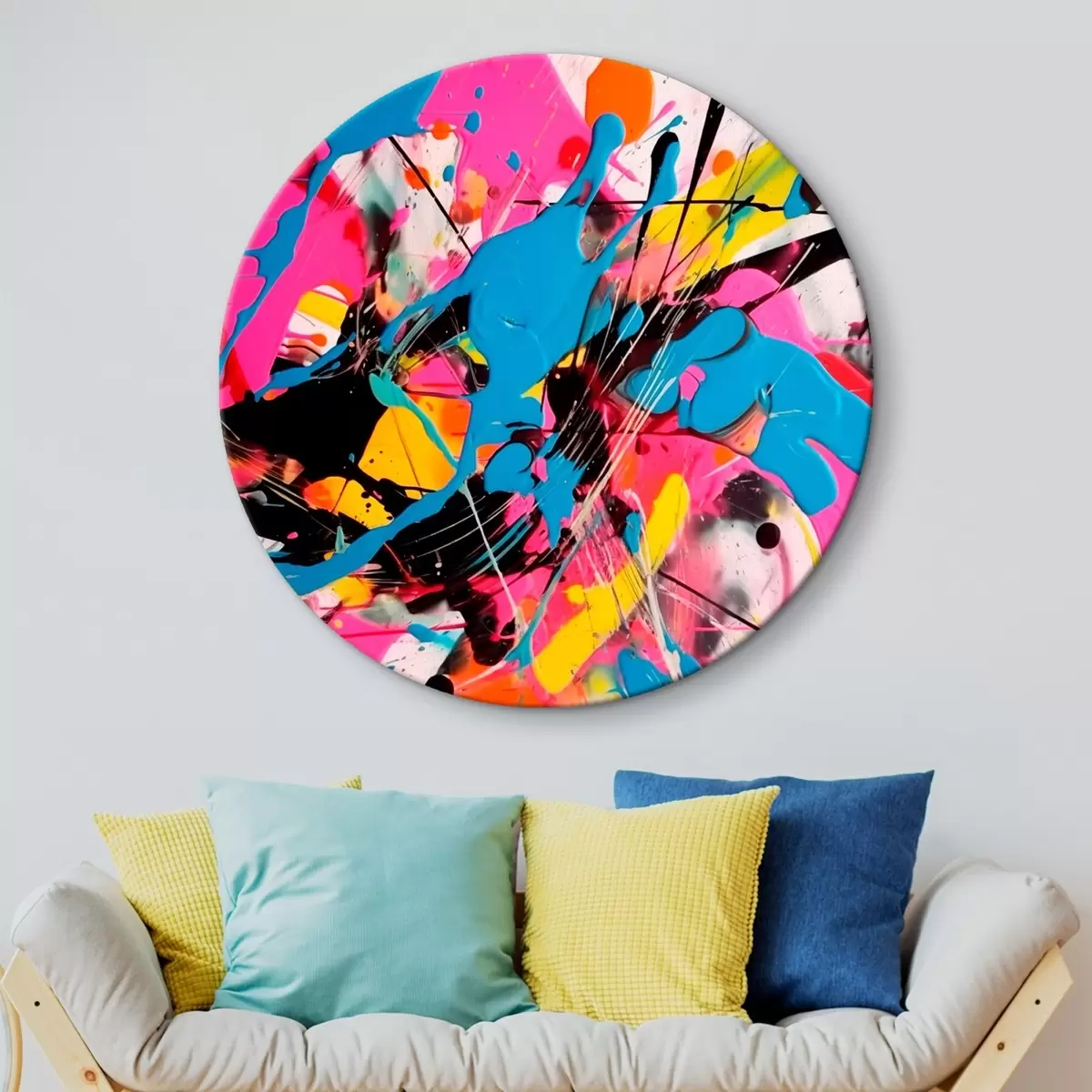 Okrągłe obrazy Jasny plamka farby. Styl abstrakcyjny z efektem kapania. r46478