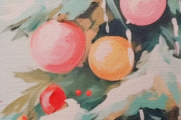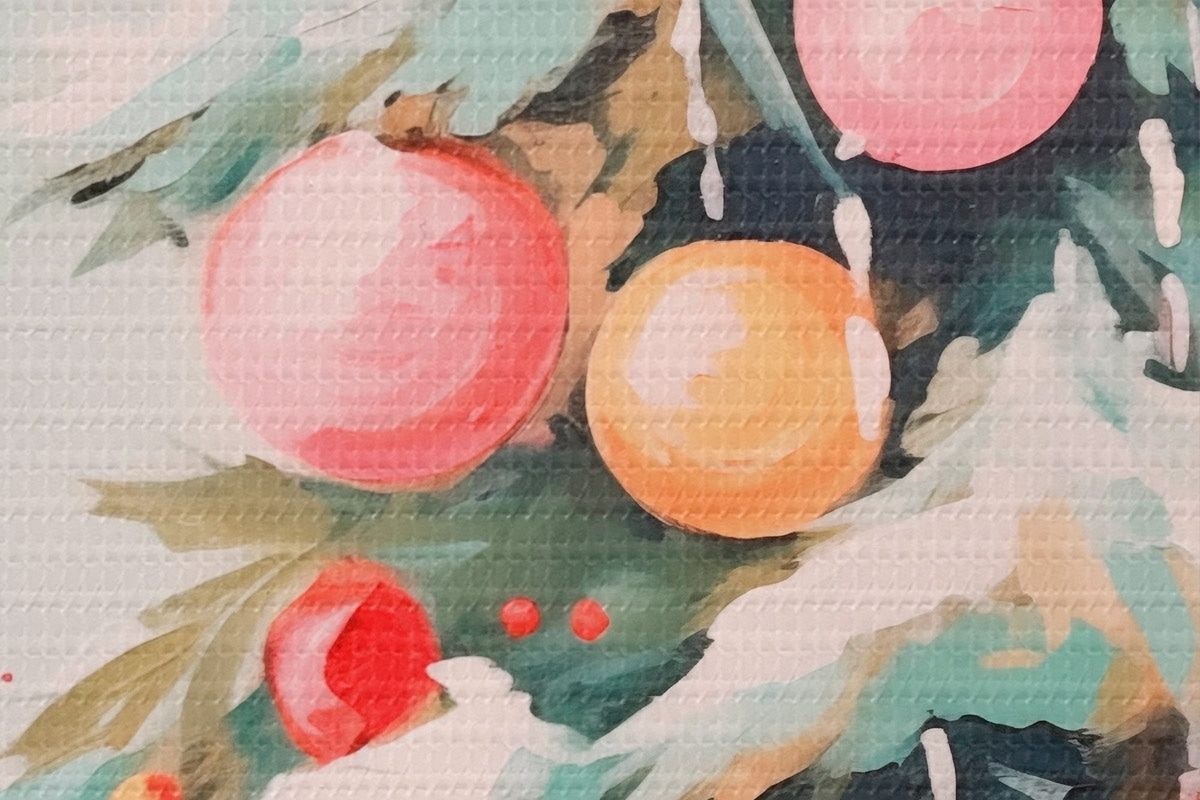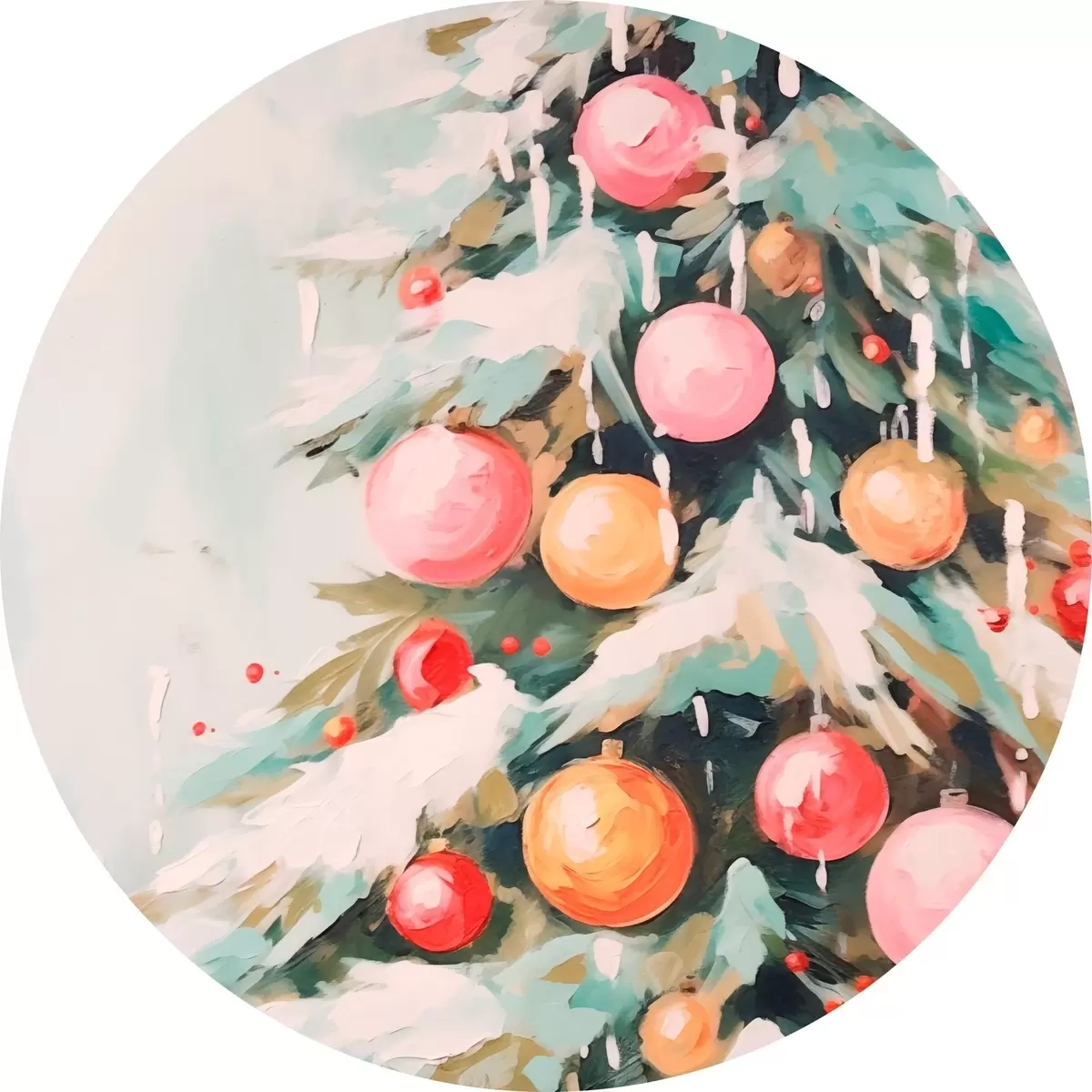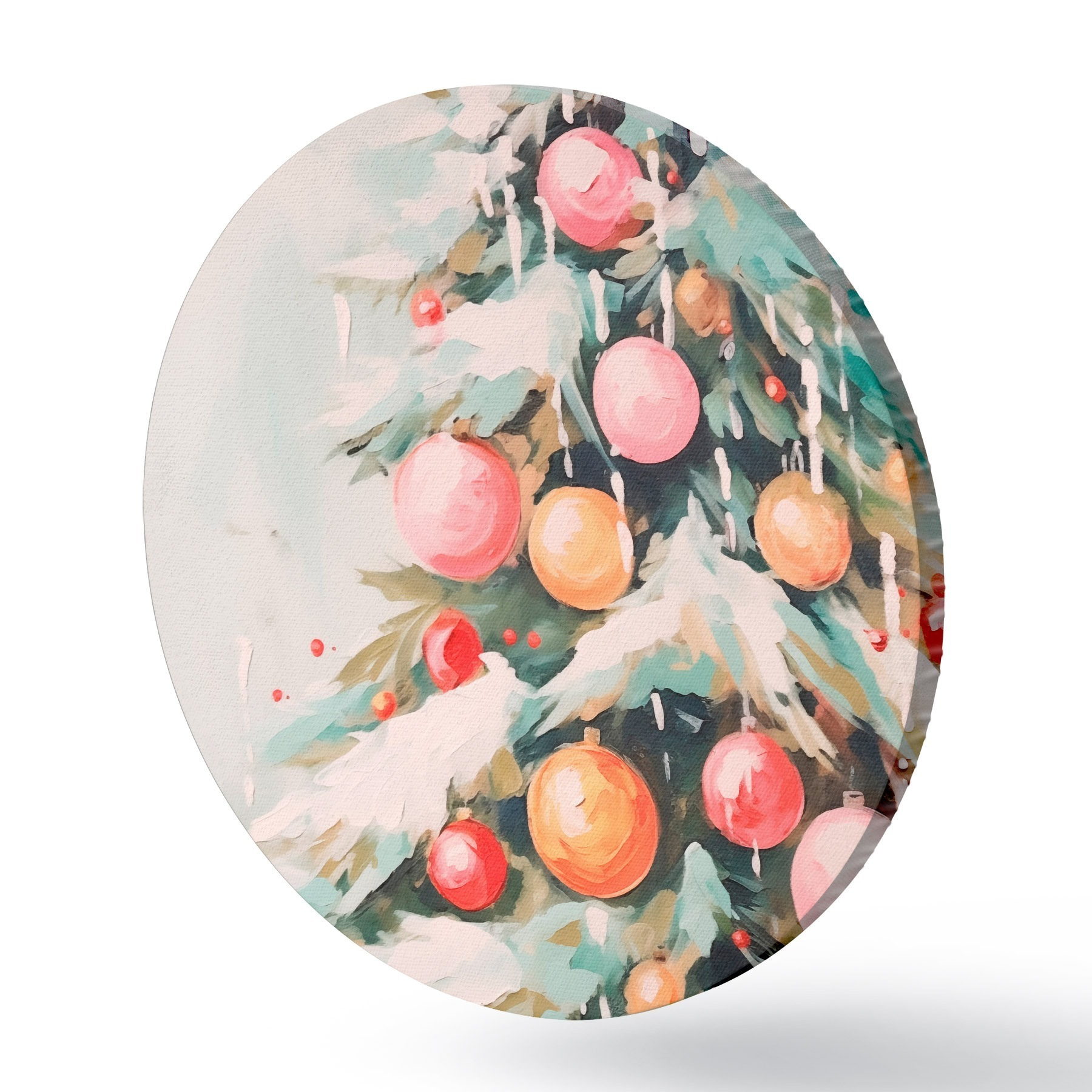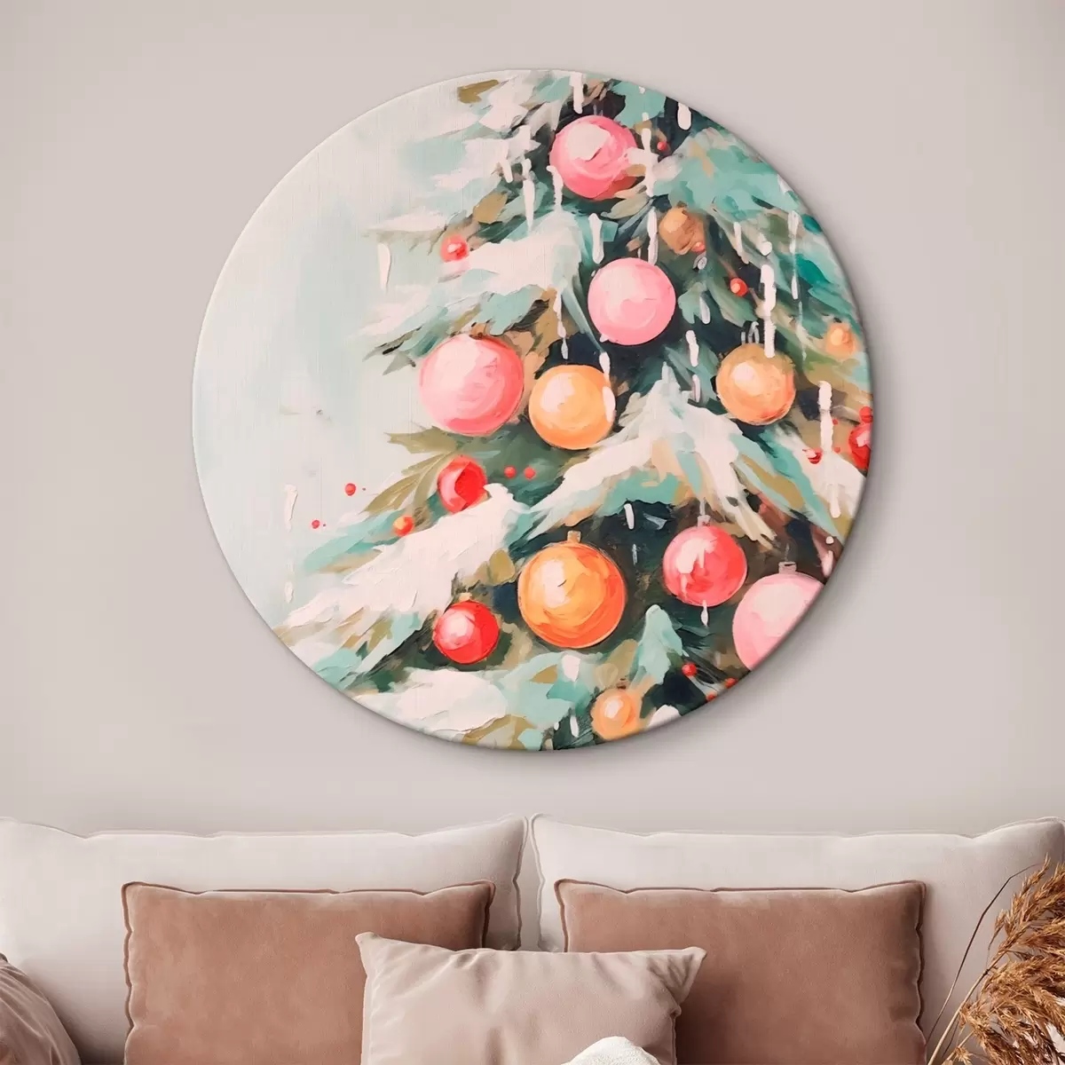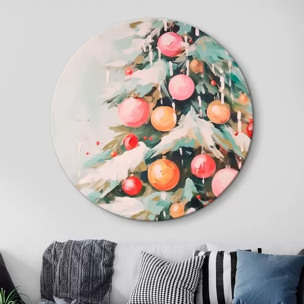 Okrągły obraz Choinka z śniegiem i różowymi bombkami Nr r46480