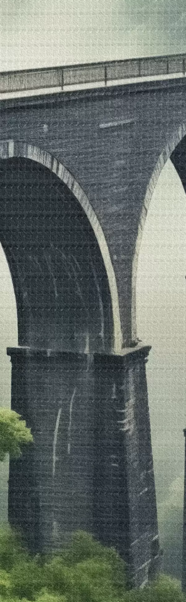Okrągły obraz Kamienny wiadukt nad zamgloną, zalesioną doliną Nr r46483