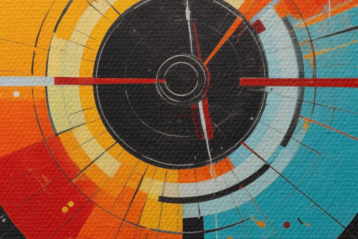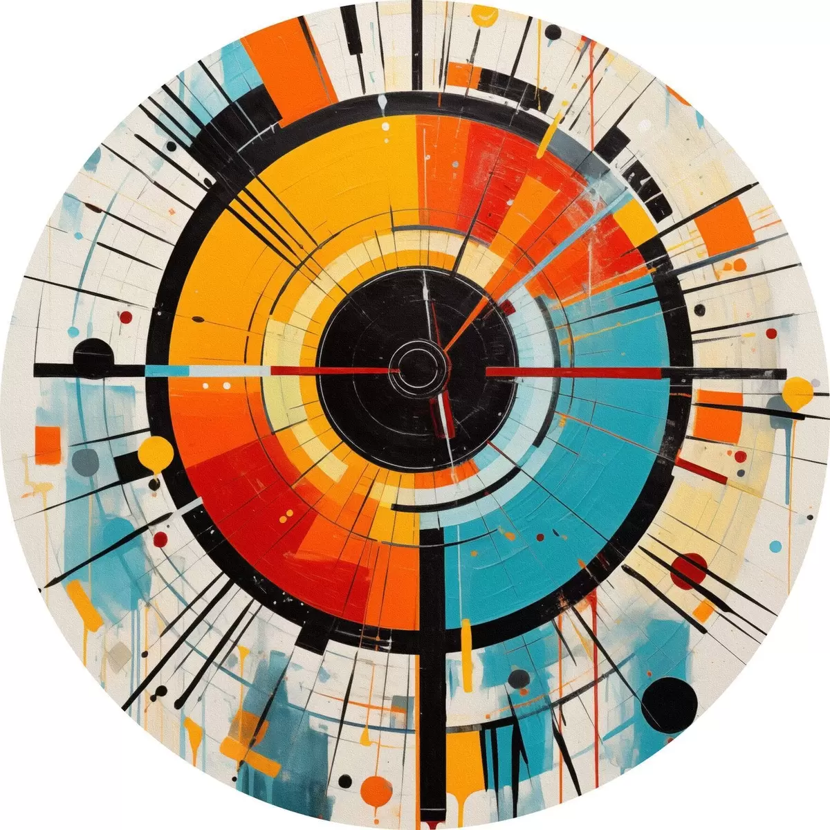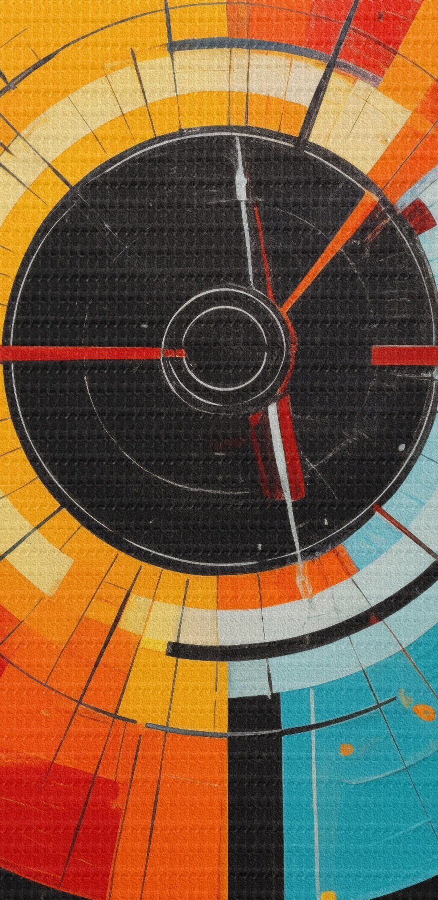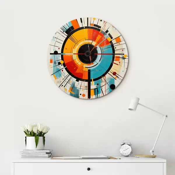 Okrągłe obrazy Promieniowe rozbicie w kolorach turkusowym, pomarańczowym i czarnym r46485