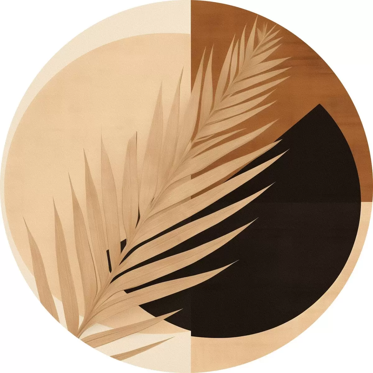 Okrągły obraz Liść palmy na tle terakoty i kremowej geometrii Nr r46490