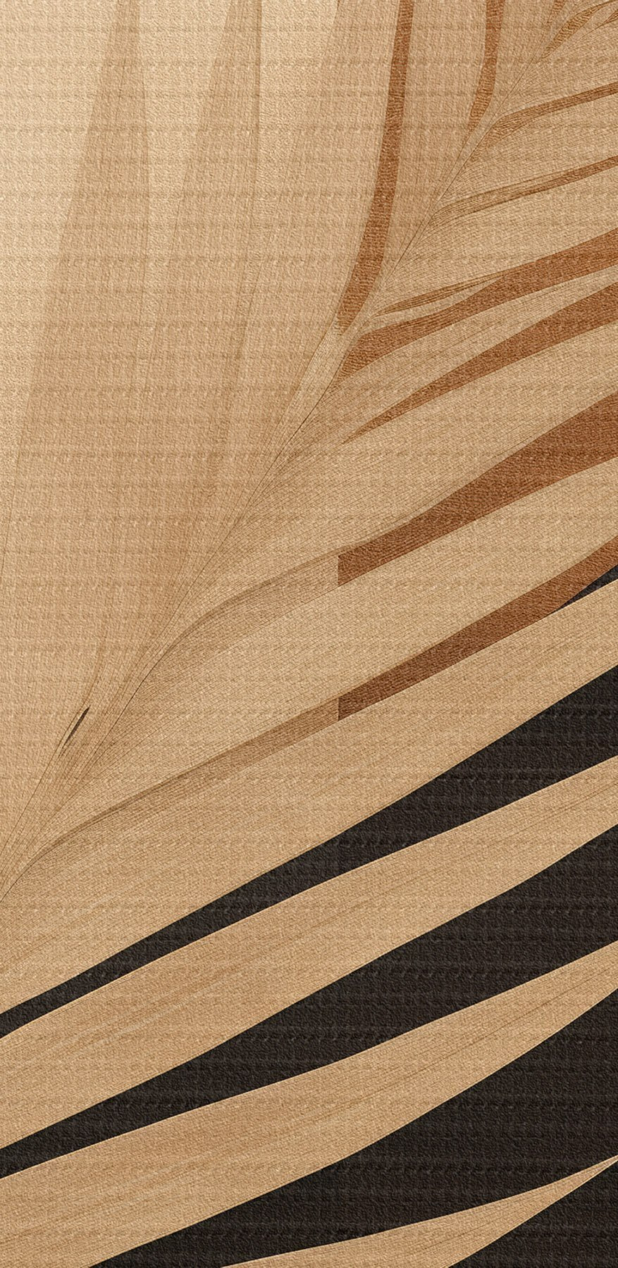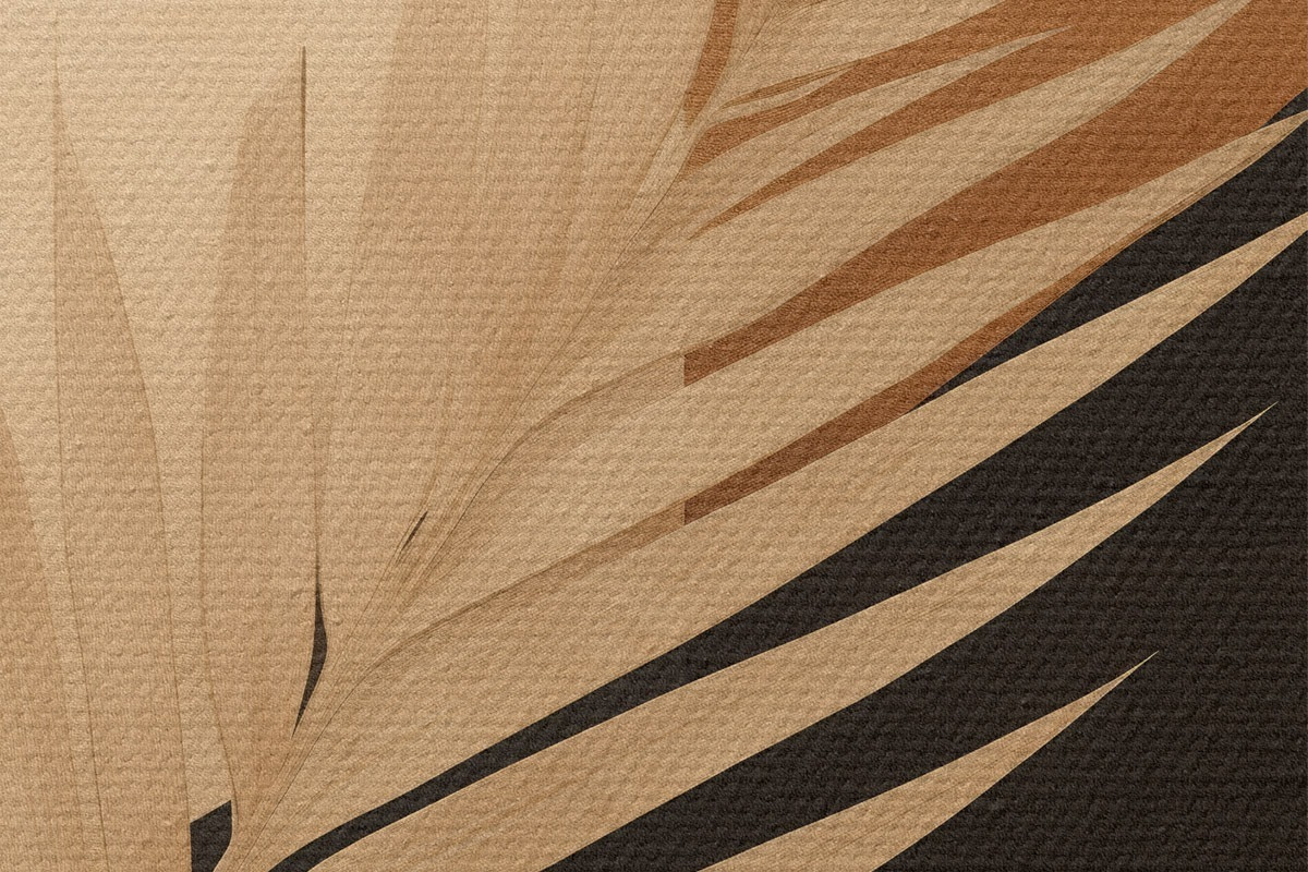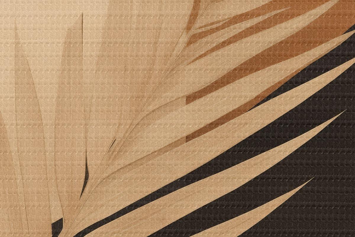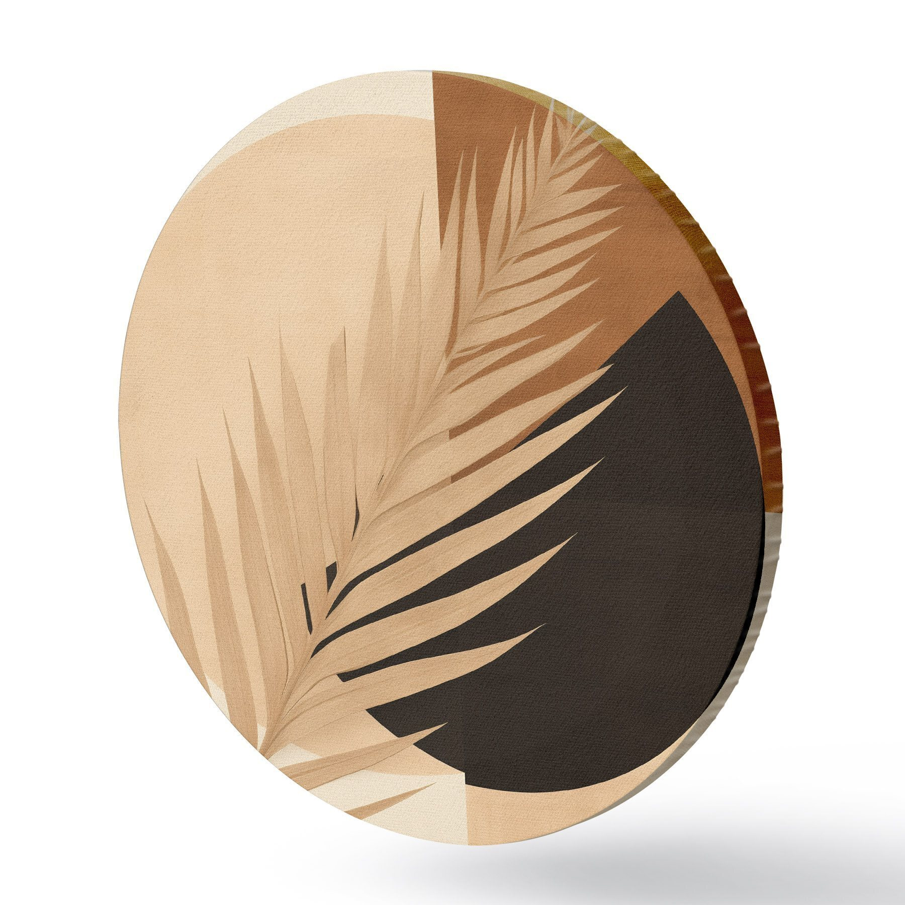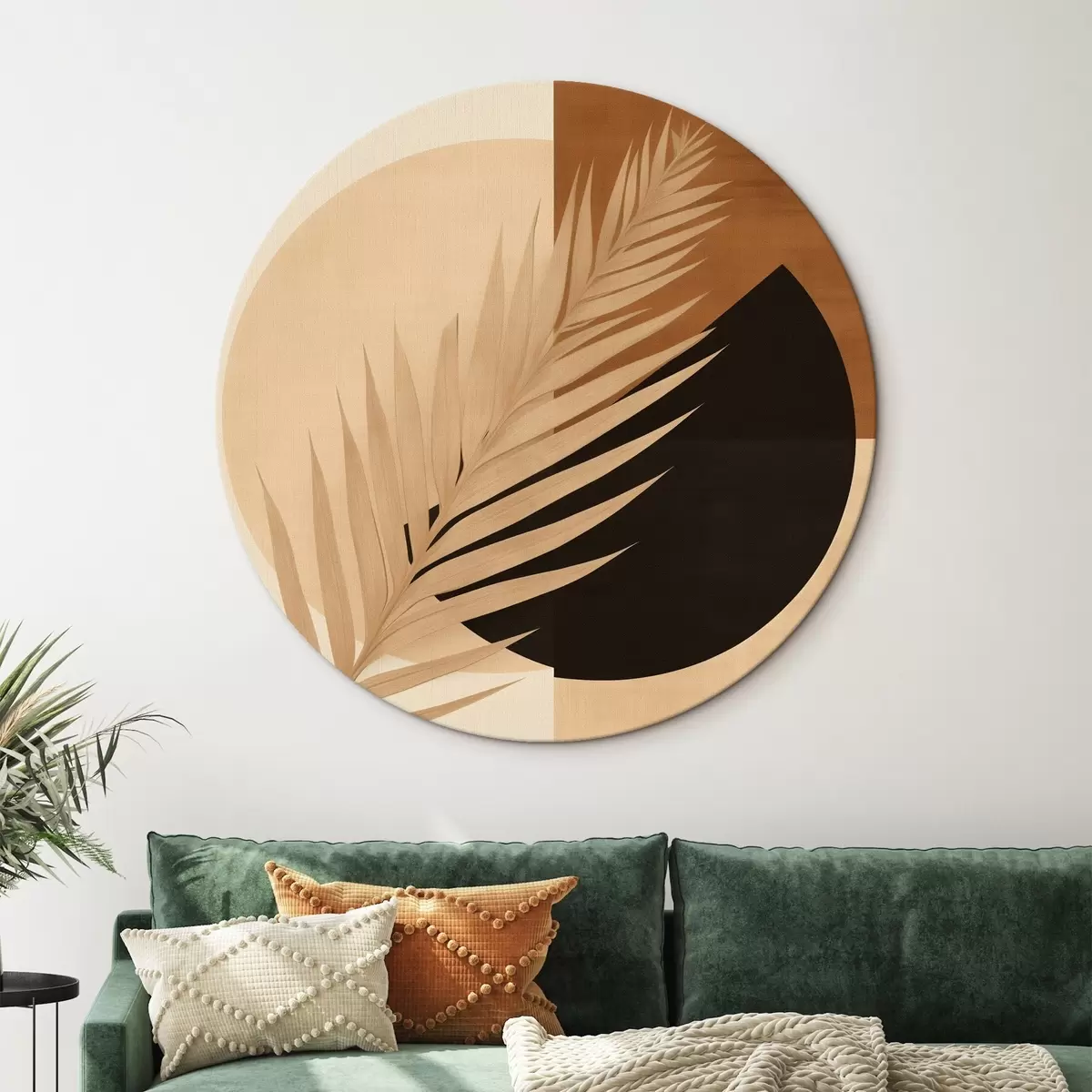 Okrągłe obrazy Liść palmy na tle terakoty i kremowej geometrii r46490
