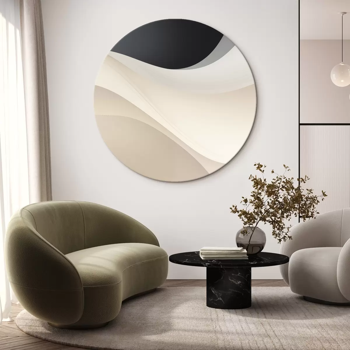 Okrągłe obrazy Warstwowe, płynne krzywizny w kolorze czarnym, kremowym i szarym r46492