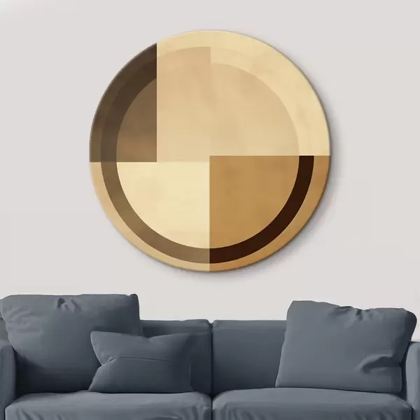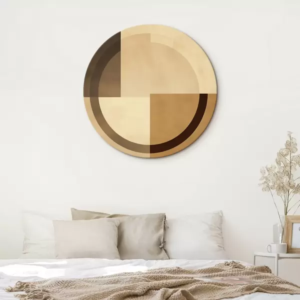 Okrągły obraz Stonowane kwadraty z półprzezroczystym pierścieniem, ciepła paleta kolorów ziemi Nr r46498
